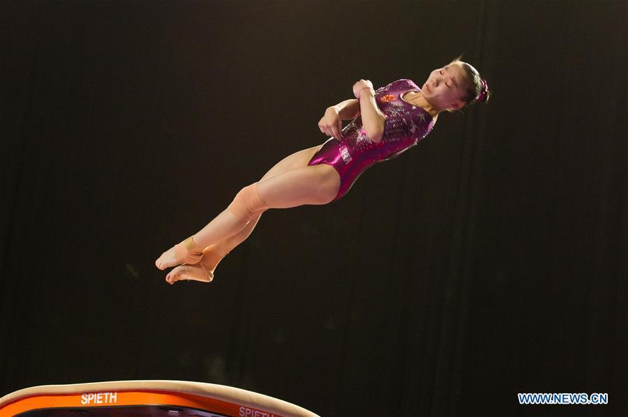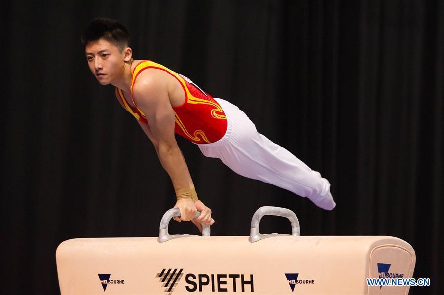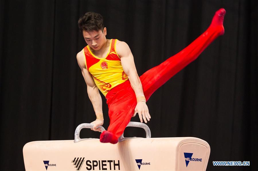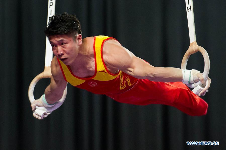 Zou Jingyuan of China competes during the rings qualifications of 2017 World Cup Gymnastics at Hisense Arena on Feb. 22, 2017 in Melbourne, Australia. (Xinhua/Bai Xue)