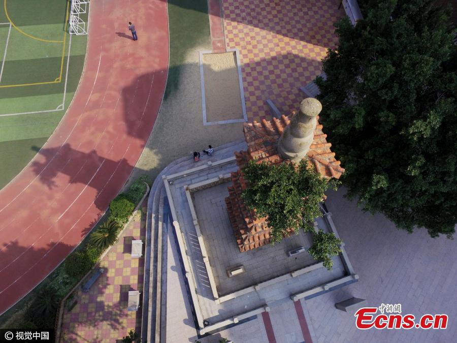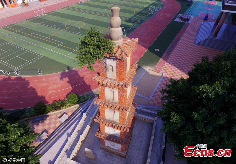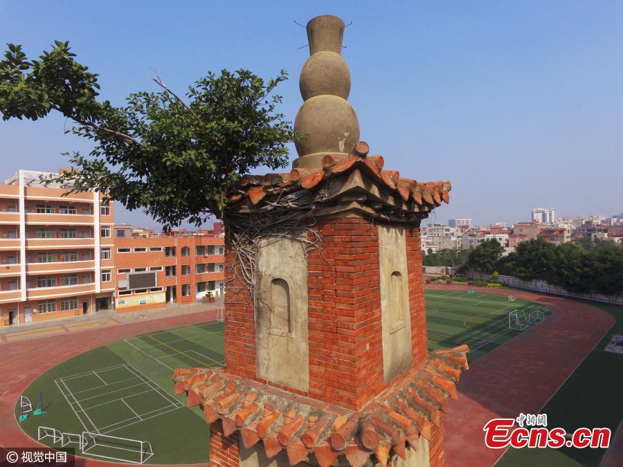 A banyan tree grows on the Xing Pagoda at an elementary school in Anhai Town in Jinjiang City, East China’s Fujian Province. The pagoda is listed as a provincial cultural relic for it was the place where Zheng Chenggong (1624-1662), a Qing Dynasty naval general, who forced Dutch invaders to leave Taiwan in 1662, studied in his childhood. The tree is thought to be endangering the 16.6-meer-tall pagoda. (Photo/CFP)
