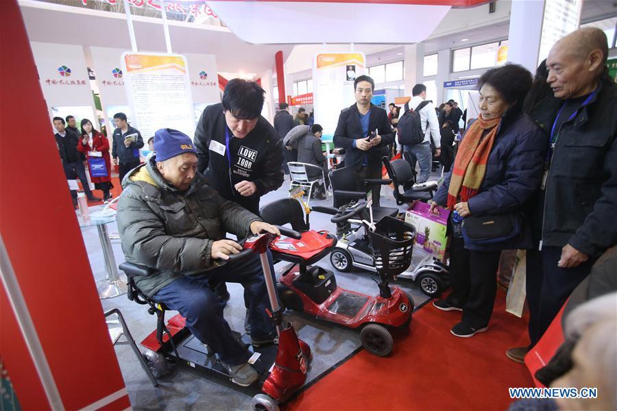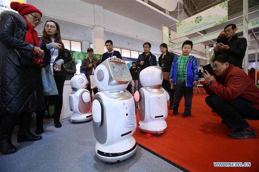 Visitors watch the nursing robots during the 2017 China International Senior Care Expo in Beijing, capital of China, Feb. 25, 2017. The three-day exhibition kicked off on Saturday, attracting over 200 companies in the senior care industry. (Xinhua/Chen Xiaogen)