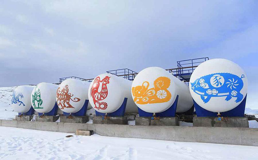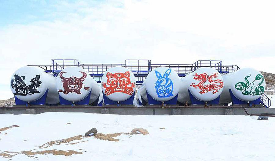 Members of China's Antarctic exploration team at the Zhongshan Station in South Pole have painted oil tankers with faces of Peking Opera characters. (Photo/Xinhua)