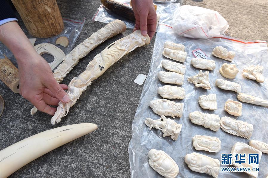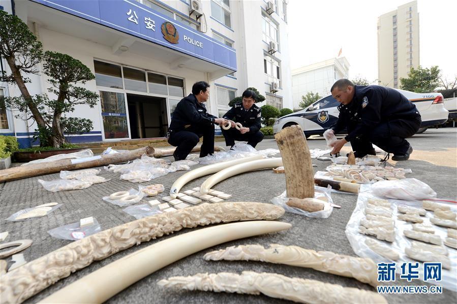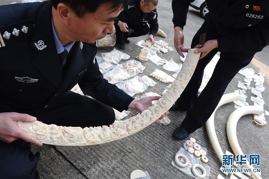 Police officers show seized ivory products in Putian City, East China’s Fujian Province, Feb. 27, 2017. Local police confiscated 61.6 kg of ivory products, valued at 2.4 million yuan ($349,000) after busting a ring suspected of buying, transporting and selling ivory products though mobile app WeChat. (Photo/Xinhua)