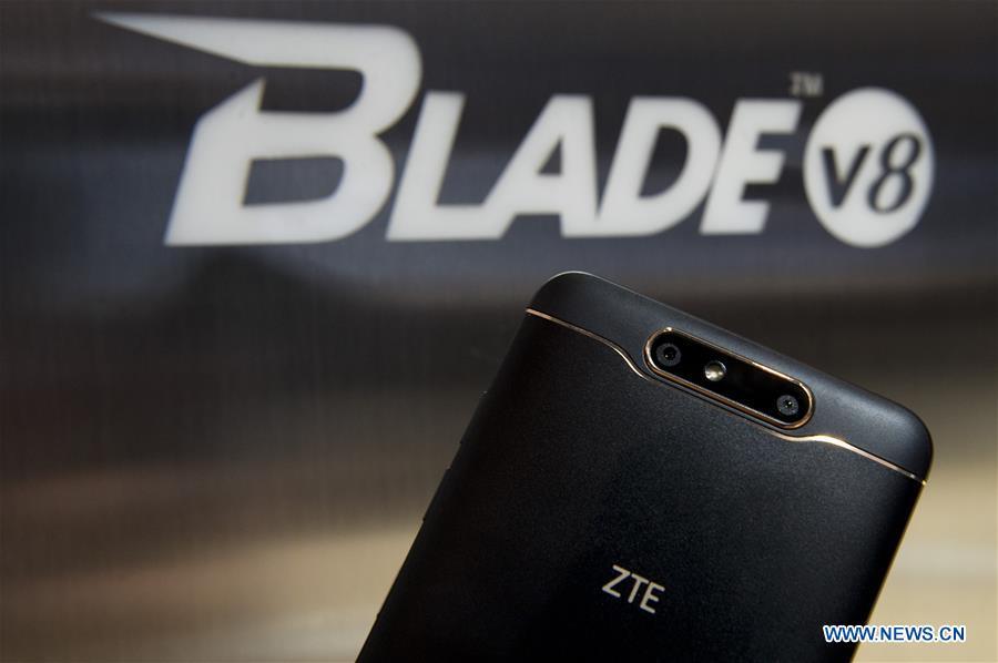Chinese enterprise ZTE displays the new V8 devices on the first day of the Mobile World Congress 2017 in Barcelona, Spain, Feb. 27 2017. Chinese Company ZTE launched on Monday its devices at the Mobile World Congress (MWC), being held from Monday to Thursday in Spain's northeastern city of Barcelona. (Xinhua/Lino De Vallier)