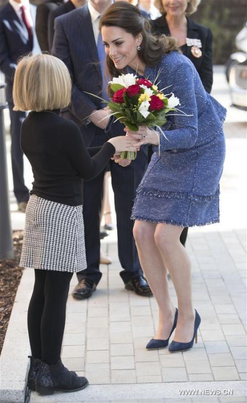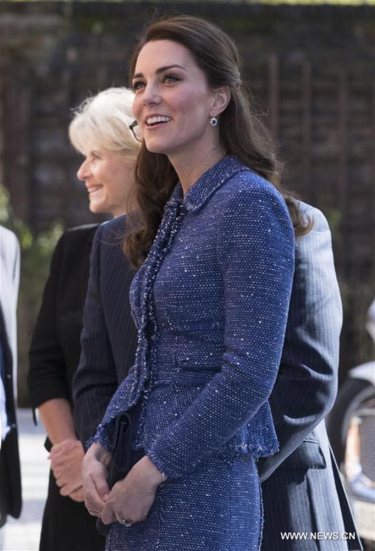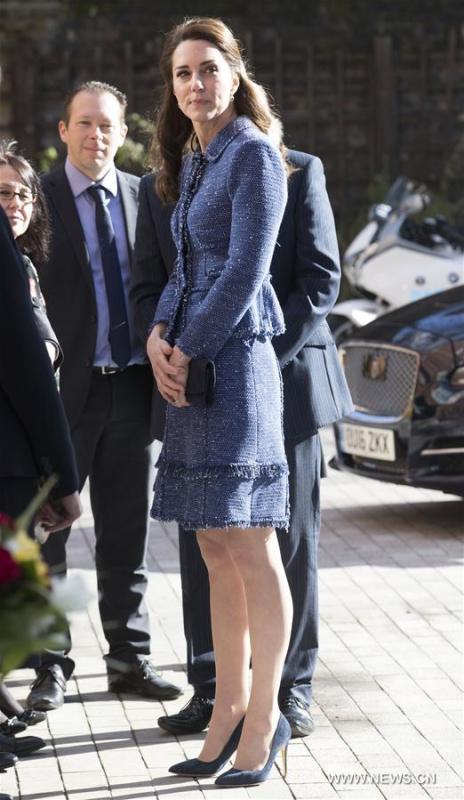 Britain's Duchess of Cambridge Kate (Front) arrives at Ronald McDonald House Evelina London to officially mark the opening of the new "home away from home" accommodation for the families of children being treated at Evelina London Children's Hospital in London, Britain, on Feb. 28, 2017. (Photo/Xinhua)