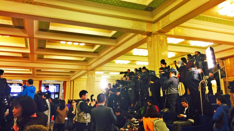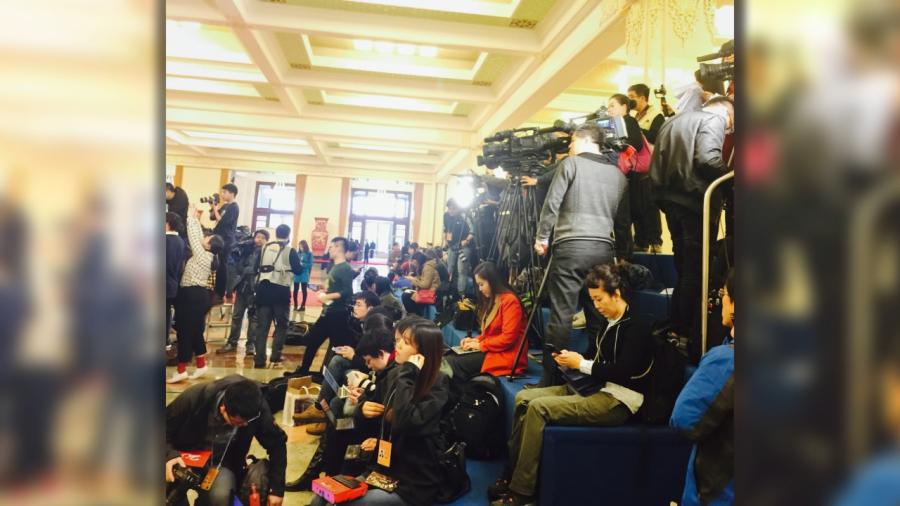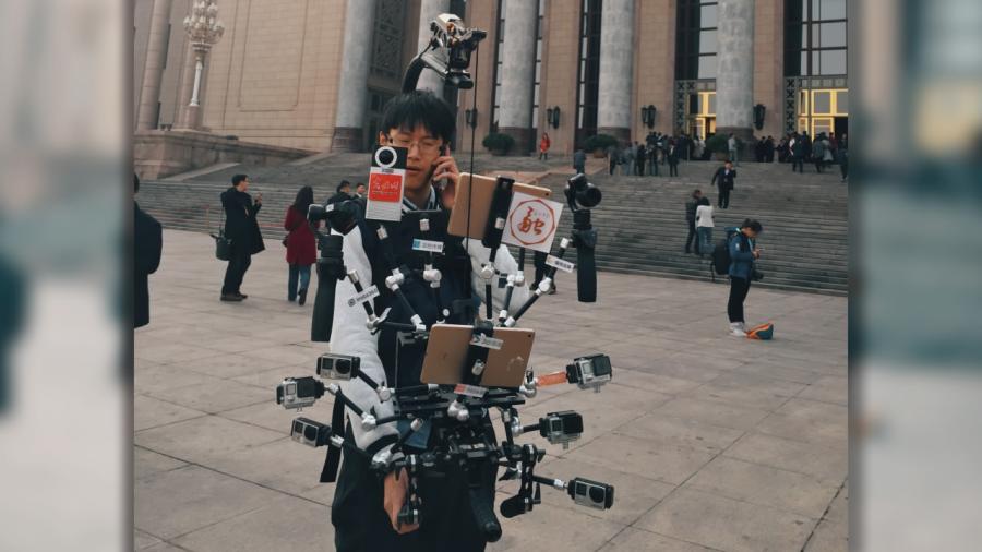 One of the journalists was seen equipped with multi-channel new media devices, drawing attention from many. (Photo/CGTN)