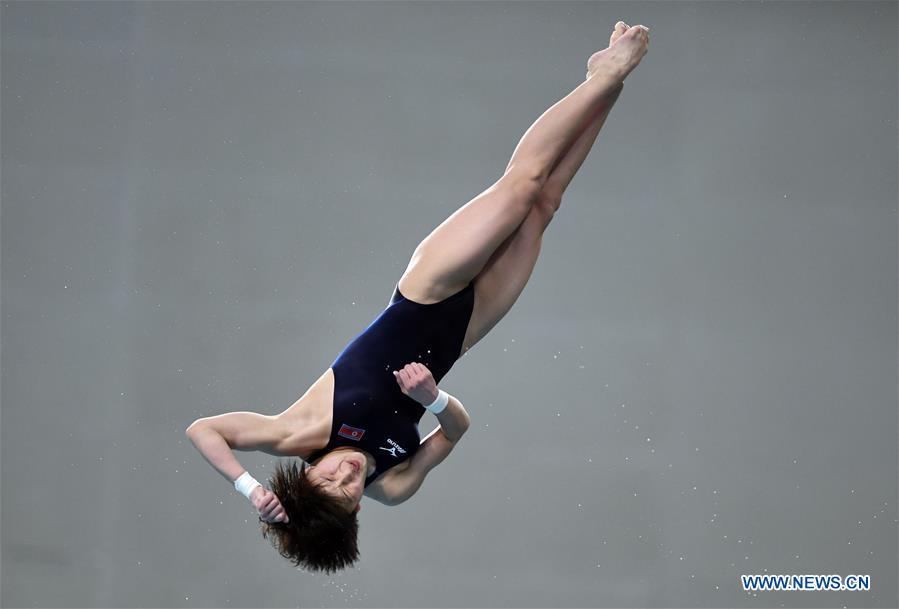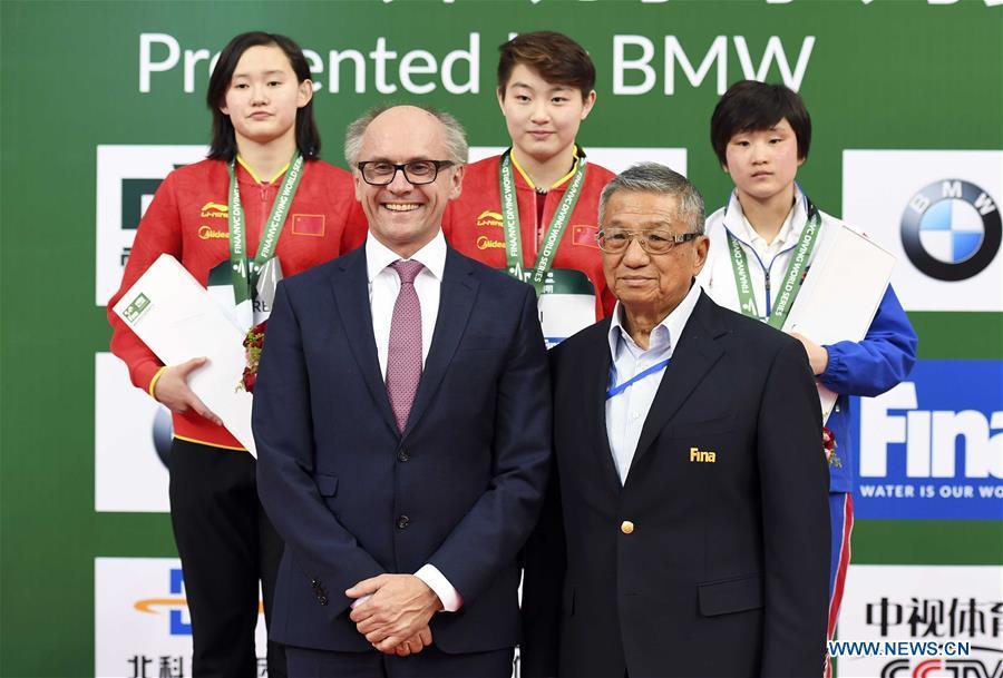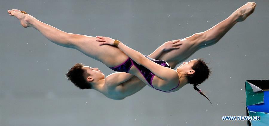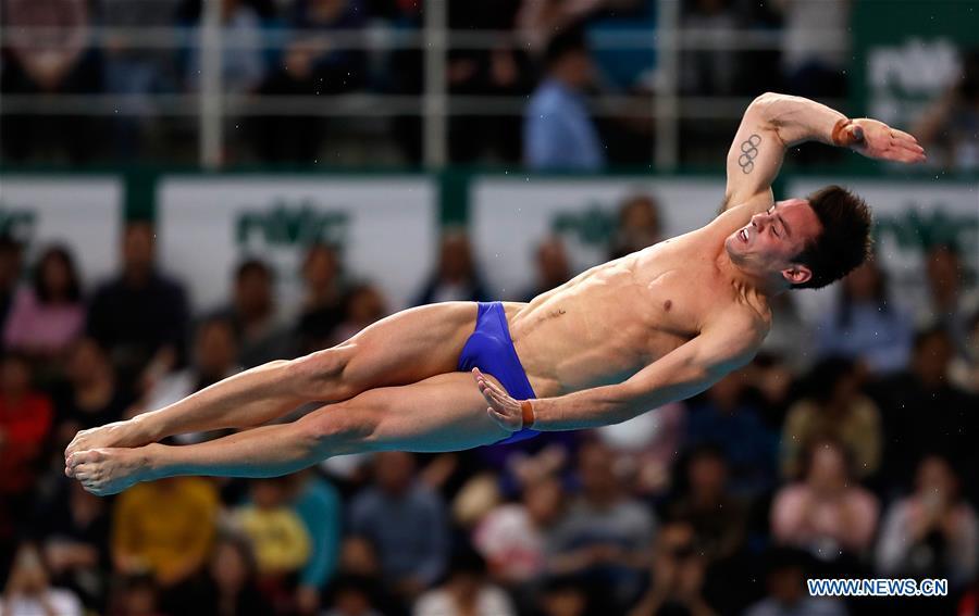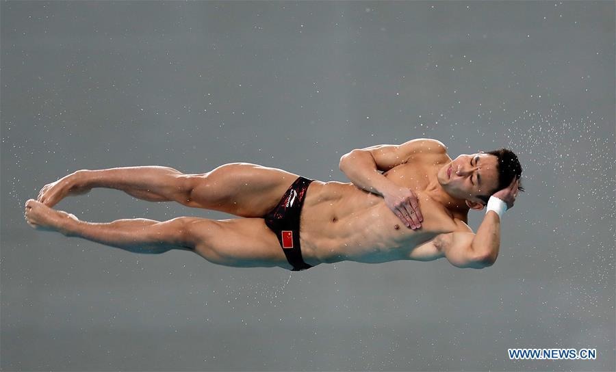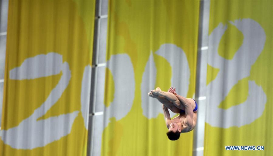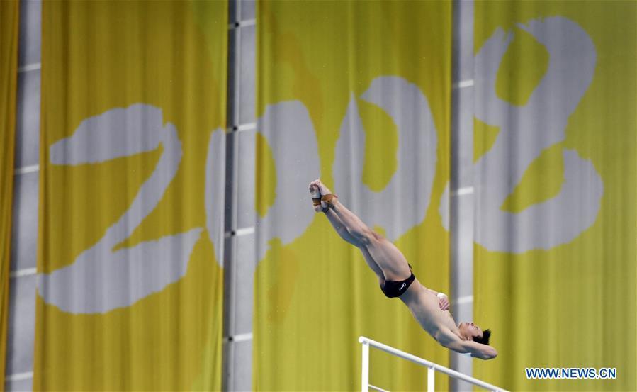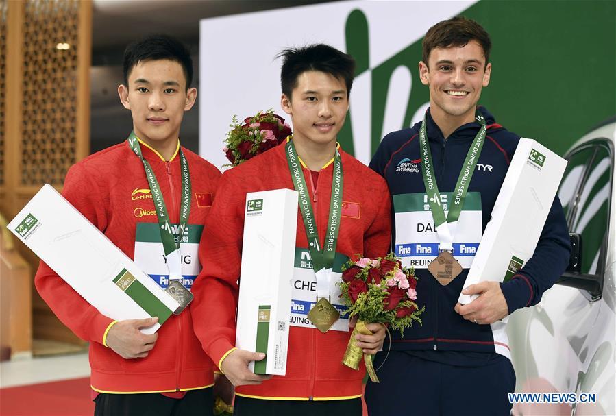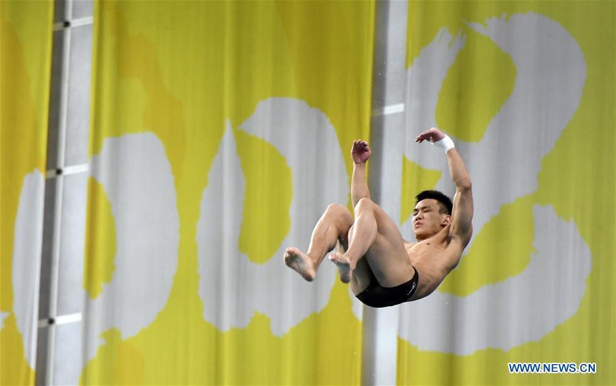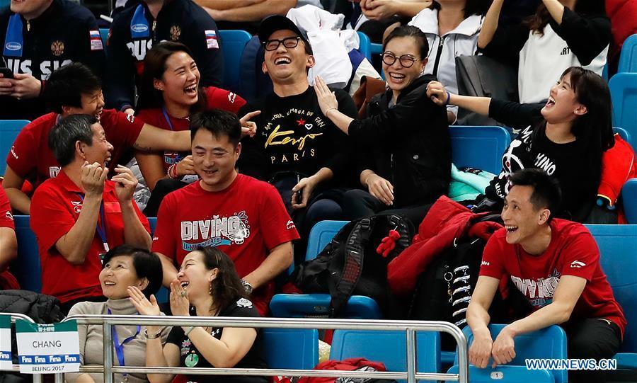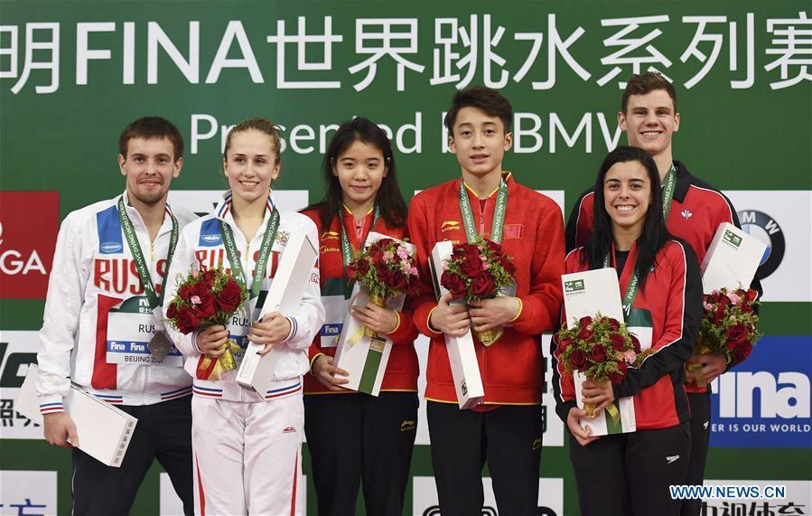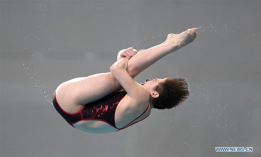 Si Yajie of China competes during the women's 10m platform final of the FINA Diving World Series 2017 in Beijing, capital of China, March 5, 2017. Si Yajie claimed the title of the event with a total of 406.60 points. (Xinhua/Wang Lili)