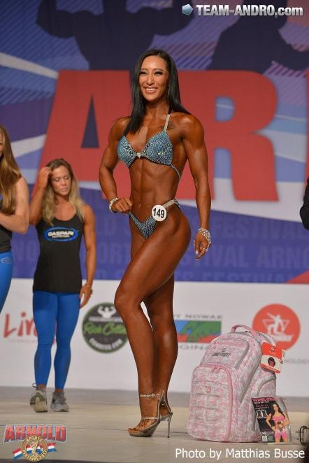 Mou Cong of China, no. 149, takes the first place in Women’s Bodyfitness (Figure D) up to 167 cm and also the Women’s Bodyfitness (Figure) Overall Winner in the 2017 Arnold Amateur in Columbus, Ohio, March 5, 2017. Mou makes a history as the first Chinese woman to win in the competition. (Photo provided to China News Service)