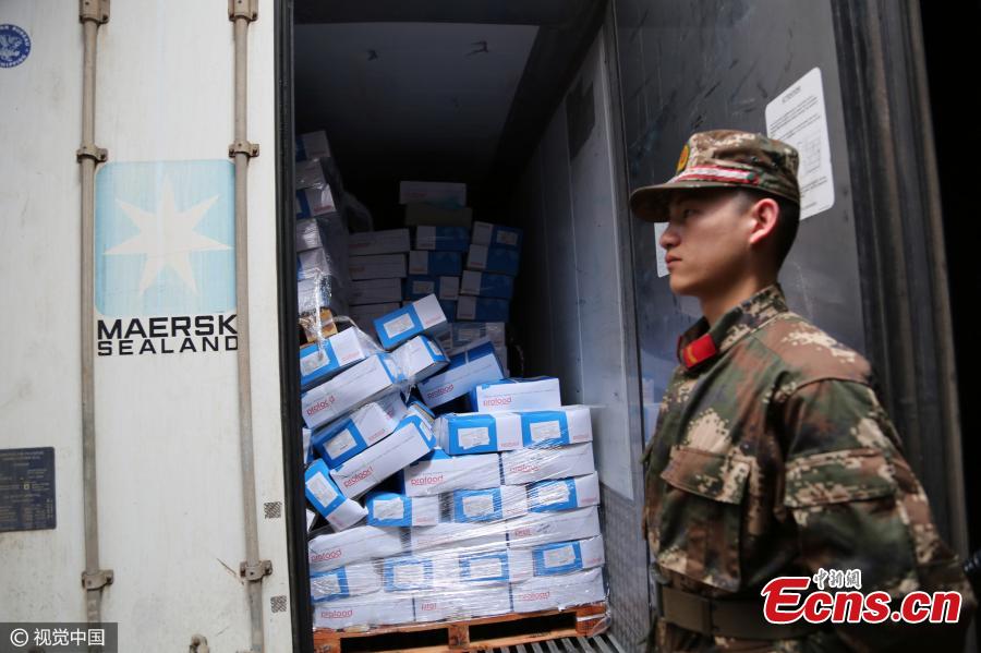 Guangdong seizes 600 tons of smuggled frozen meat(1/3)