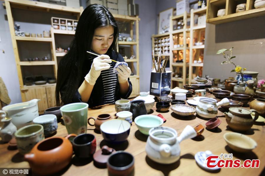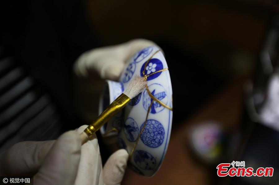 Huang Junling repairs broken pottery in her studio in Xi’an City, capital of Northwest China’s Shaanxi Province. A major of photography at university, she later developed an interest in Kintsukuroi, the Japanese art of repairing broken pottery with lacquer dusted or mixed with powdered gold, silver, or platinum. Huang is mainly self-taught in the craft and has mastered the basic skills after two years of practice. (Photo/CFP)