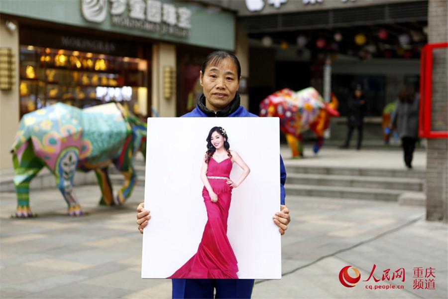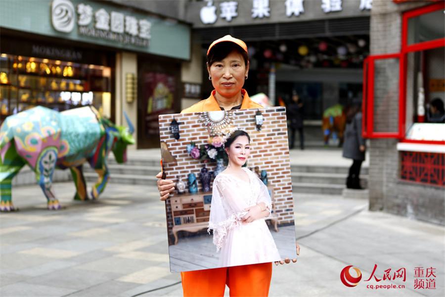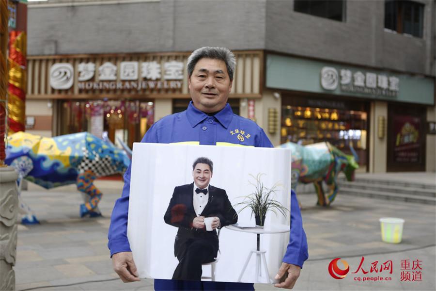 A sanitation worker couple holds their photo in Dazu district, Chongqing. (Photo/cq.people.cn)