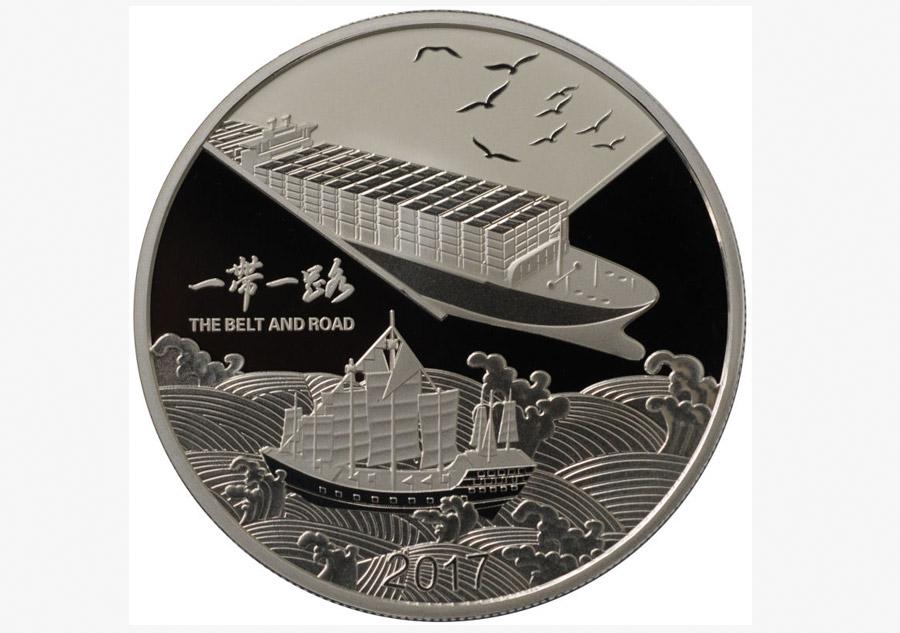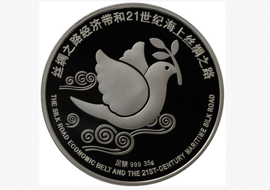 China Gold Coin Incorporation issued silver souvenir medals of the Silk Road Economic Belt and the 21st-Century Maritime Silk Road on Thursday. The medals were produced by the Shenyang branch of China Banknote Printing and Minting, with the printing technology previously used only on panda coins -- a privilege bestowed to China's national treasure. (Photo provided to chinadaily.com.cn)