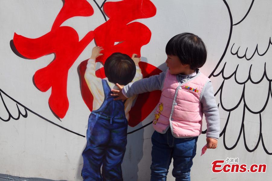 Huge 3D wall paintings grace Sanlian Village, Shangrao County, East China’s Jiangxi Province. It took 25 people more than 20 days to create the 3D paintings that showcase the traditional culture of the region and the daily life of its farmers. The artwork is attracting many visitors. (Photo: China News Service/Wang Jian)