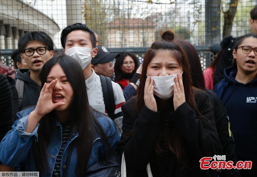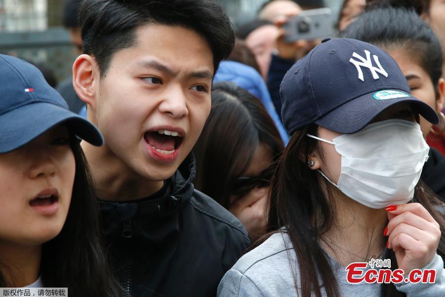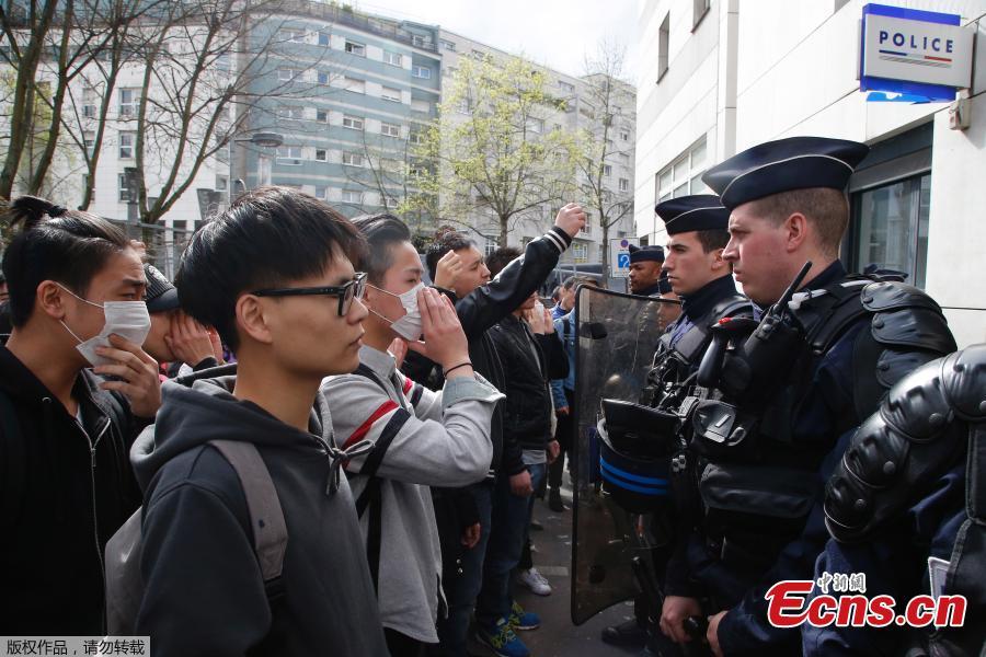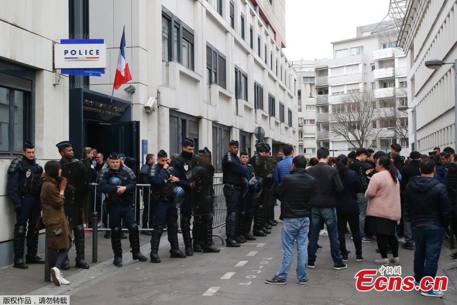French police face off with members of the Chinese community during a protest demonstration outside a police station in Paris, France, March 28, 2017. Violent clashes in Paris between baton-wielding police and protesters outraged at the police killing of a Chinese man in his home have seen three police officers injured and 35 protesters arrested, authorities said Tuesday. (Photo/Agencies)