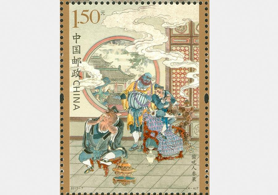 China Post issued on March 30 a set of four stamps, which visualize stories from the popular 16th-century novel Journey to the West. (Photo provided to China Daily)