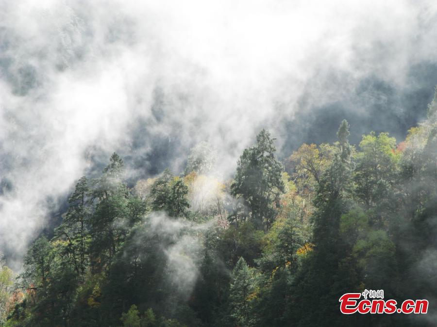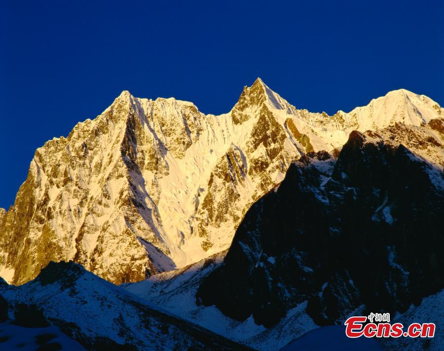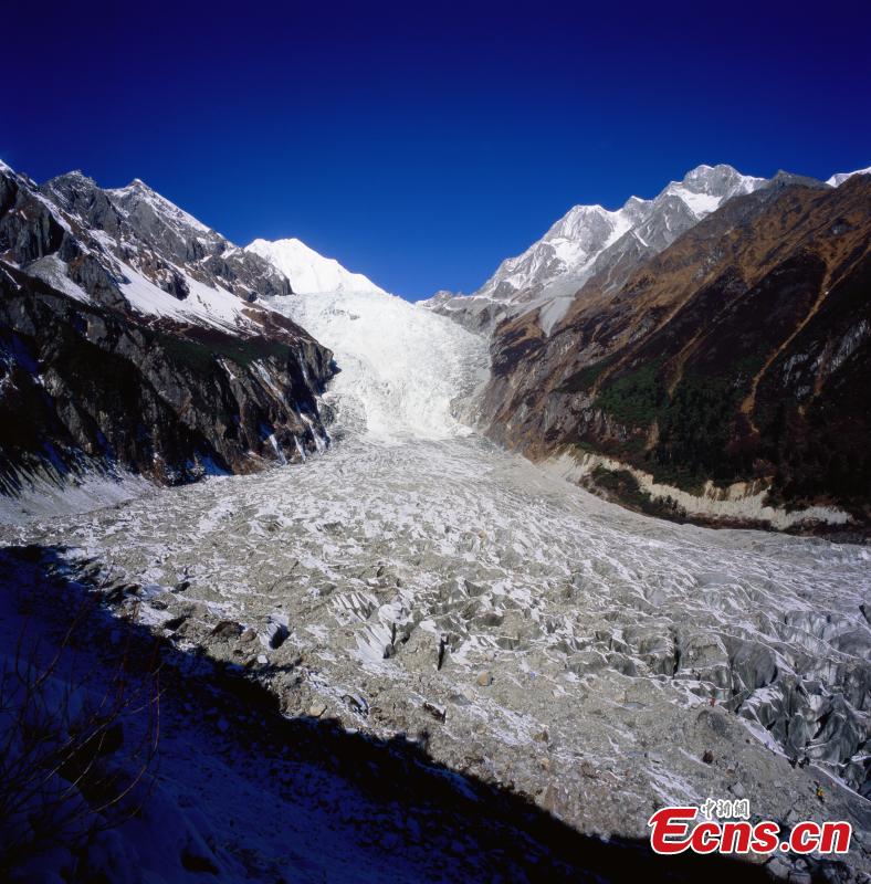 The snow mountains in Hailuogou (Hailuo Dyke) in Mt. Gongga, Southwest China’s Sichuan Province. Hailuo Dyke Glacier Forest Park boasts a lowest altitude of 2,850 meters above sea level, frequent geographical movements, and complete glacier landforms. While the grand canyon is about 30.7 kilometers long, the glacier, which formed about 1,600 years ago, is 14.2 kilometers long and 100-300 meters deep. (Photo/CTPphoto)