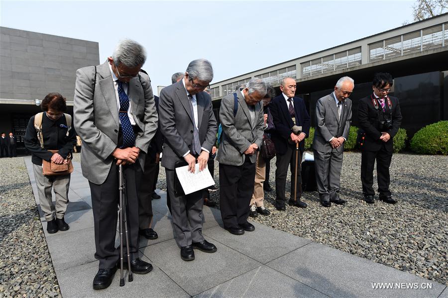 Members of a Japanese delegation mourn for the victims at the Memorial Hall of the Victims in Nanjing Massacre by Japanese Invaders in Nanjing, capital of east China's Jiangsu Province, March 31, 2017. The delegation has visited Nanjing to mourn for the victims by planting trees during the Tomb-sweeping Day holiday, or Qingming for 32 consecutive years since 1986. (Xinhua/Li Xiang)