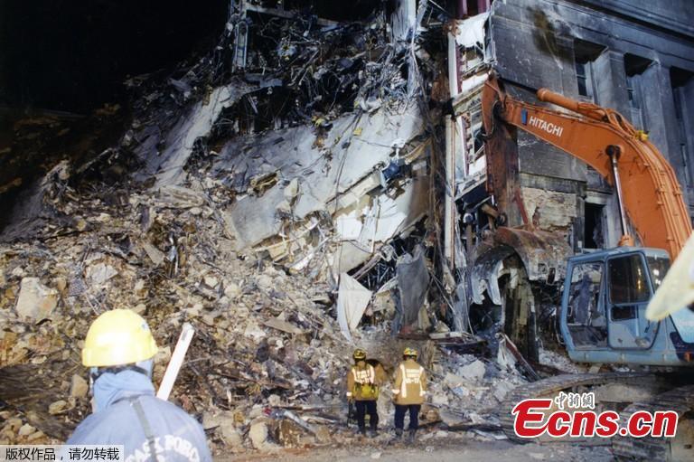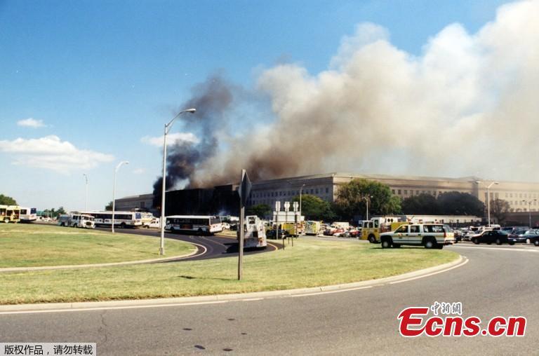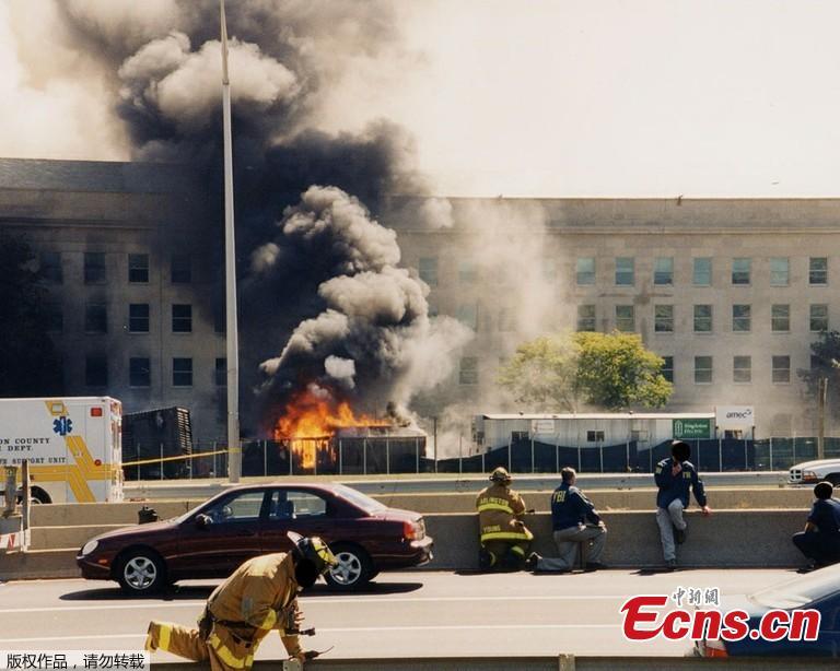 First responders arrive at the Pentagon just minutes after American Airlines Flight 77 crashed in Washington, DC on September 11, 2001. The FBI released 25 previously unseen photos taken in the hours following the attack on the Pentagon on September 11, 2001. The photos include debris from American Airlines Flight 77, first responders arriving at the scene, the holes left in the inner rings of the building, and the massive amounts of carnage left behind.(Photo/Agencies)