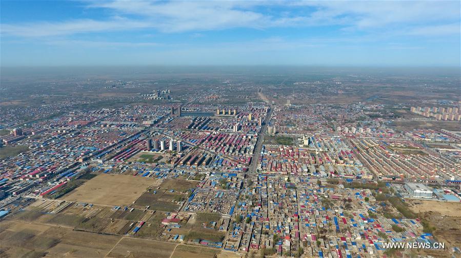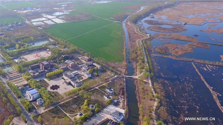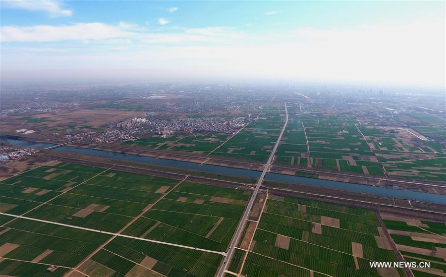 Aerial photo taken on April 1, 2017 shows farmland in Rongcheng County, north China's Hebei Province. China announced Saturday it would establish the Xiongan New Area in Hebei Province, as part of measures to advance the coordinated development of the Beijing-Tianjin-Hebei (BTH) region. The New Area, about 100 km southwest of downtown Beijing, will span three counties that sit at the center of the triangular area formed by Beijing, Tianjin and Hebei's provincial capital Shijiazhuang. (Xinhua/Yang Shiyao)