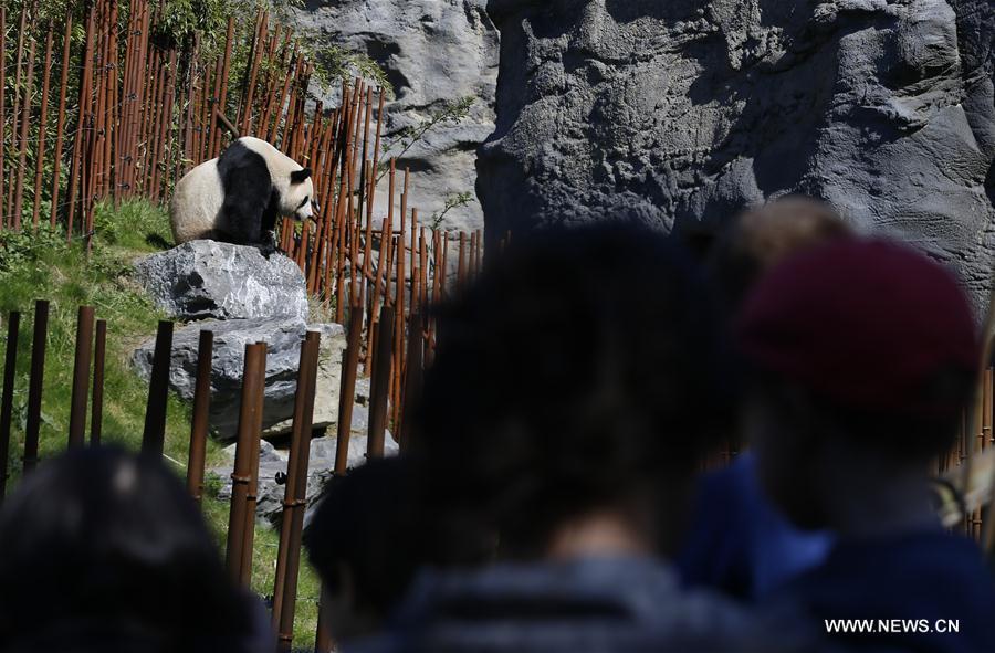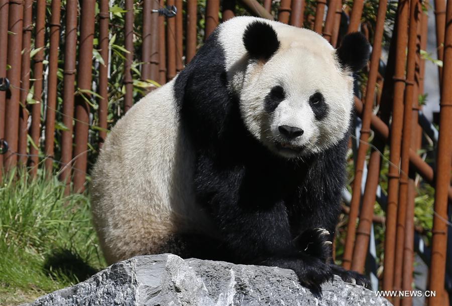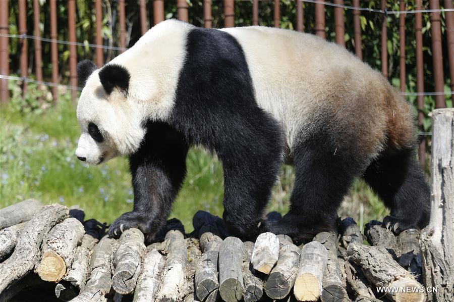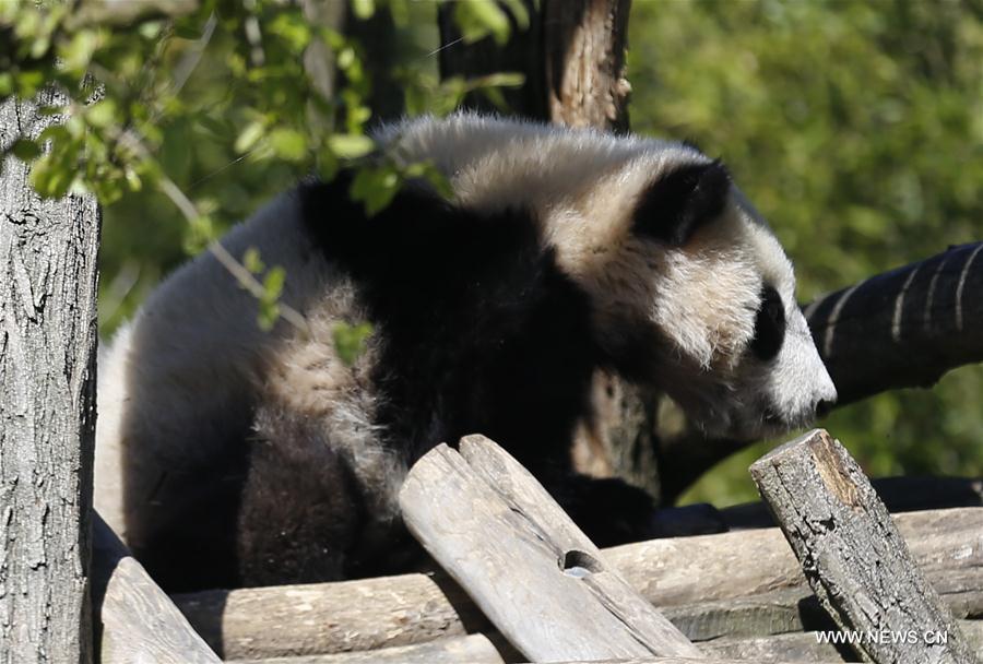 Giant panda Hao Hao basks in the sunshine at Pairi Daiza zoo in Brugelette, western Belgium, on April 2, 2017. In 2014, Chinese giant pandas Xing Hui and Hao Hao arrived at Pairi Daiza to stay for 15 years. Hao Hao gave birth to Tian Bao in 2016. The pandas live in a garden called "La Cite Des Immortels" in Pairi Daiza. According to the director of the zoo Eric Domb, it is the biggest Chinese-style garden in Europe. (Xinhua/Ye Pingfan)