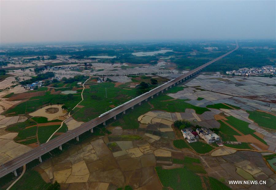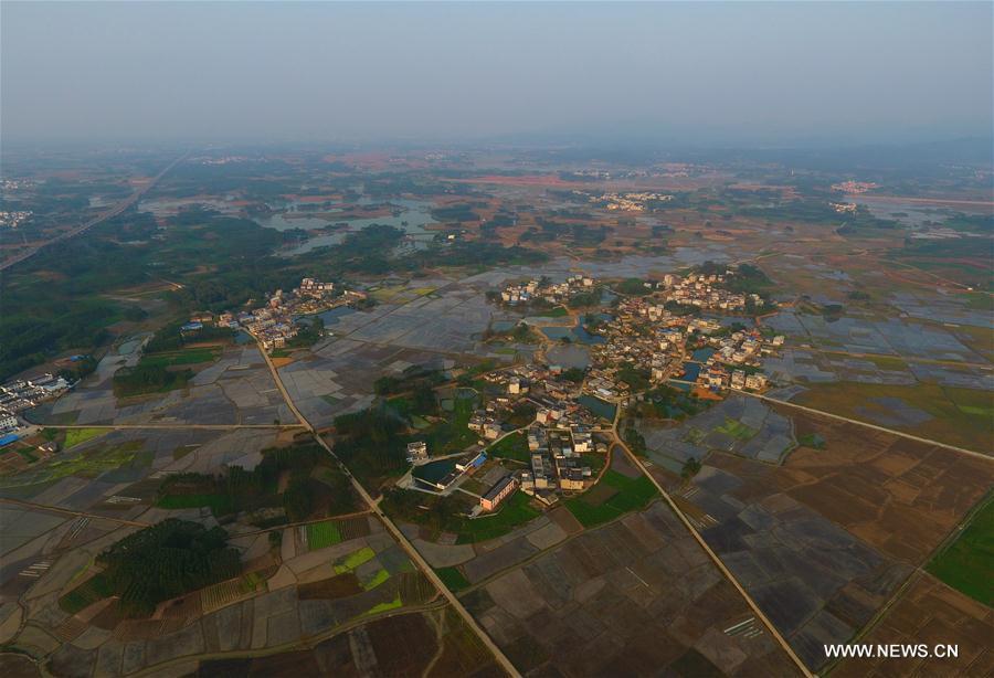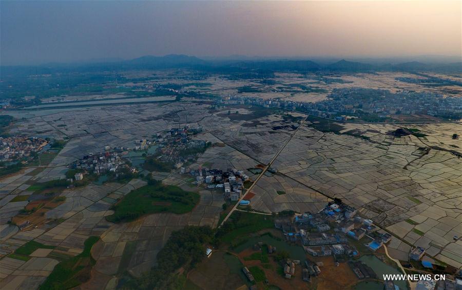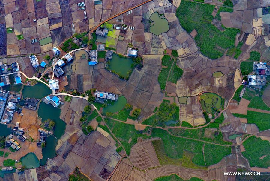 Aerial photo taken on April 2, 2017 shows farmland scenery in Binyang County of Nanning City, capital of south China's Guangxi Zhuang Autonomous Region. (Xinhua/Huang Xiaobang)