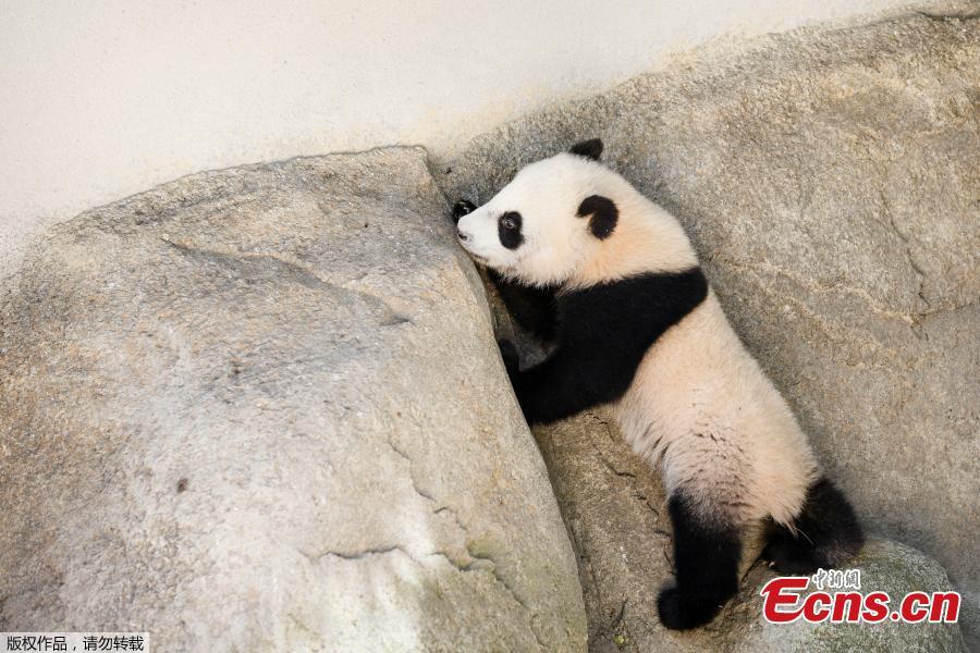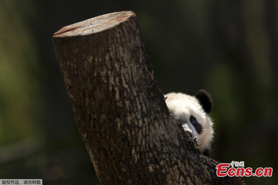 The seven-month-old female Panda bear named Chulina climbs at her enclosure at the Madrid Zoo in Madrid, Spain, Wednesday, April 5, 2017. Madrid's zoo has named its latest baby panda bear Chulina (Cutey), in homage to Chulin, the first panda born at the zoo 34 years ago.(Photo/Agencies)