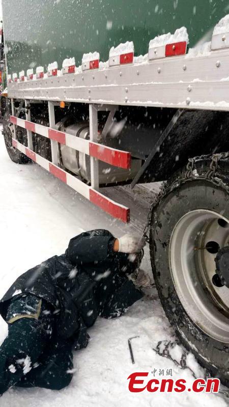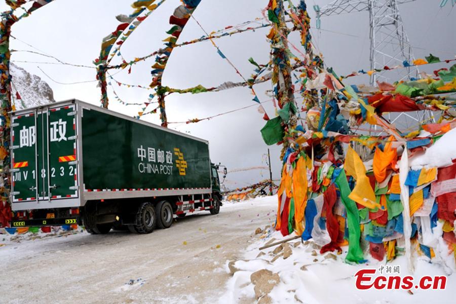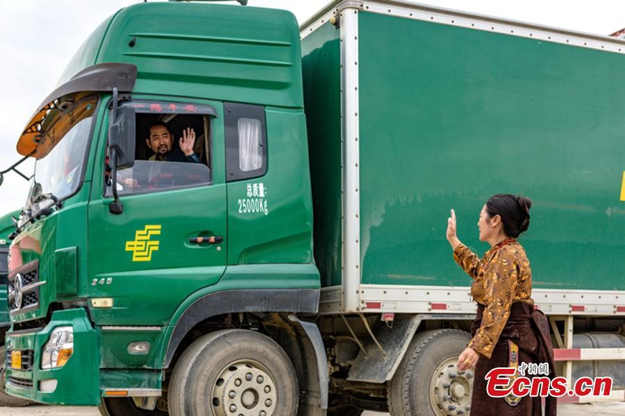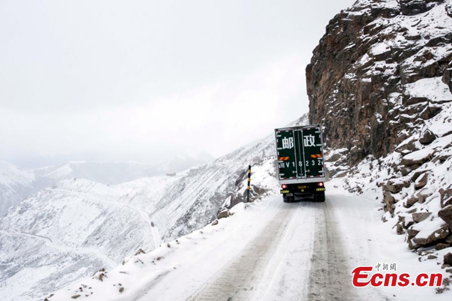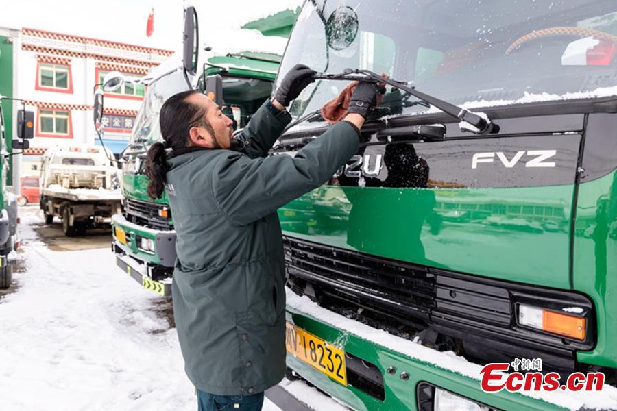 Postman Qimei Dorjee checks his truck before transporting mail through the Kangding-Dege section of the Sichuan-Tibet Highway in Sichuan Province. At an average elevation of 3,500 meters, the stretch of road is rough and significant dangers are posed by landslides, snow and ice. Qimei Dorjee has been working on the road for 28 years, and has survived many dangers. Once, he was in a critical situation after being stabbed 17 times by robbers, but he continued working after his recovery. (Photo: China News Service/Zhou Bing)