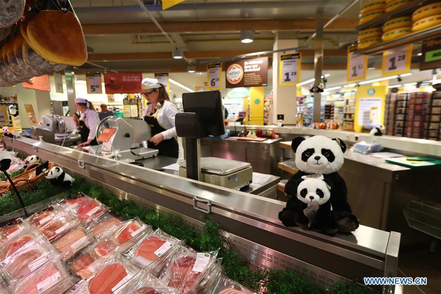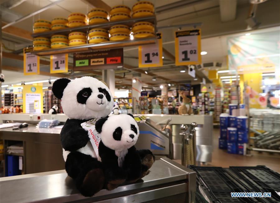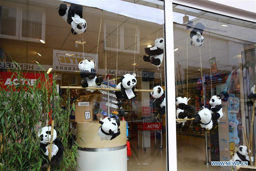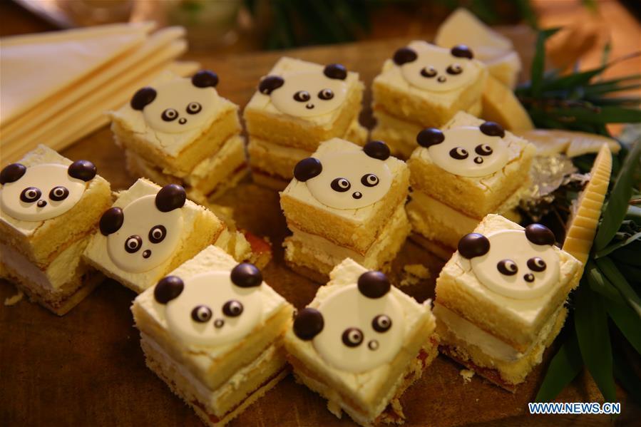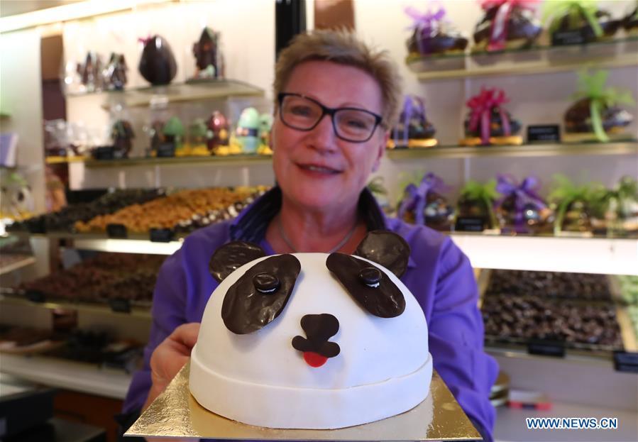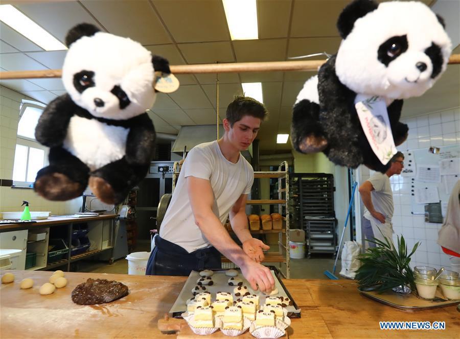 Photo taken on April 5, 2017 shows "panda cakes" in a pastry house of Rhenen, the Netherlands. The "Pandasia" at Ouwehands Zoo in the Netherlands will house giant pandas Xing Ya and Wu Wen, which are expected to arrive on April 12. (Xinhua/Gong Bing)