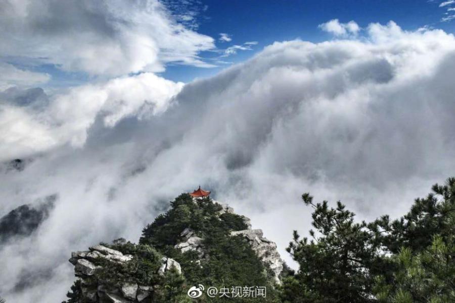 Cloud and mist surrounds the peaks at Mount Lushan in East China’s Jiangxi Province, April 9, 2017. (Photo/Weibo of CCTV)
