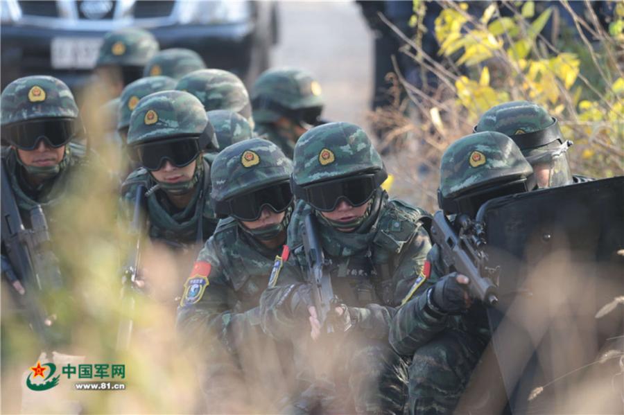 SLCU members lie in wait in the suburbs of Beijing, providing security for the APEC meeting in October, 2014. (Photo/81.cn)