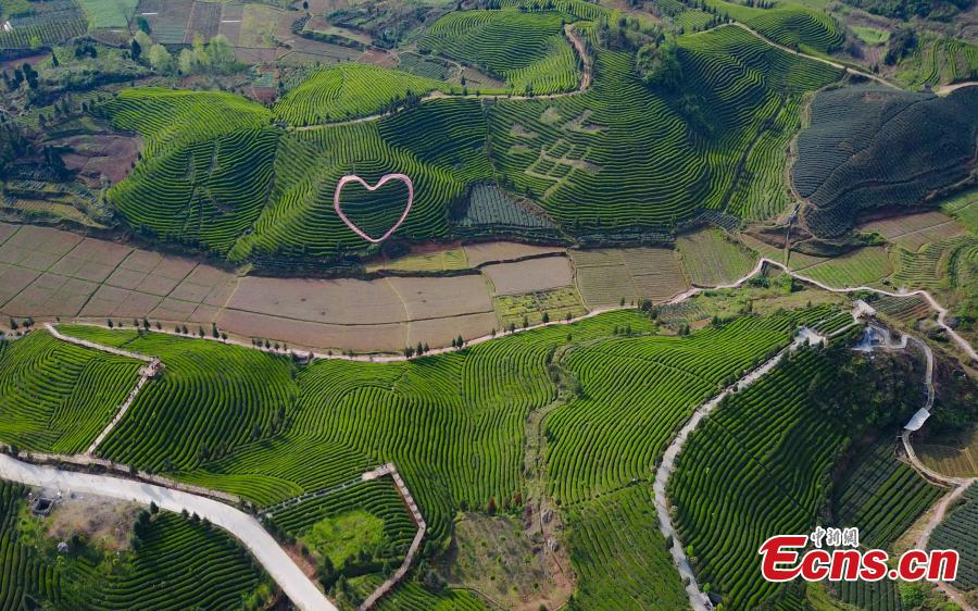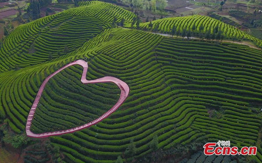 A tea plantation that also features a history of "educated youth" in Fenggang County, Southwest China’s Guizhou Province, April 12, 2017. Approximately 80,000 people visited the plantation last year. More than 3,512 residents from 884 families have had their income boosted as a result of the booming tourism and high-quality tea products. The "educated youth", known as the zhiqing, refers to the young people who left urban districts to live and work in rural areas in Mao’s era. (Photo: China News Service/He Junyi)