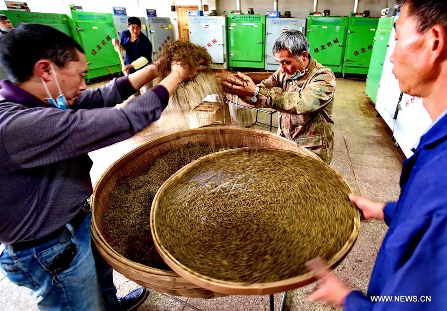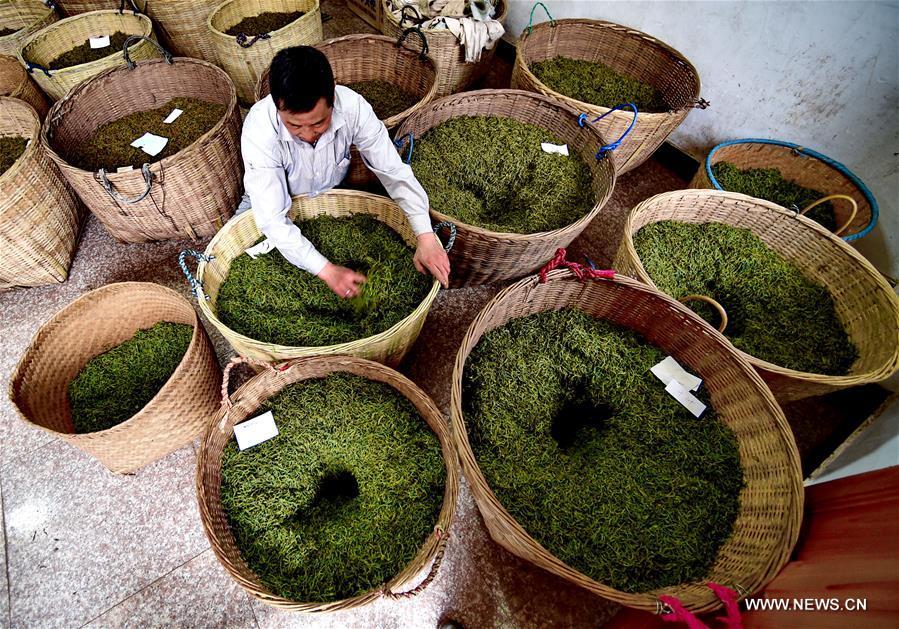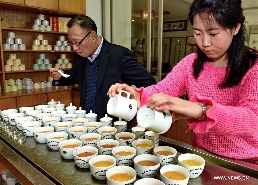 Tea farmers pick tea buds to make Jinjunmei tea in a natural reserve of the Wuyi Mountain, southeast China's Fujian Province, April 15, 2017. The Wuyi mountain has over-400-year history of black tea cultivation. (Xinhua/Zhang Guojun)