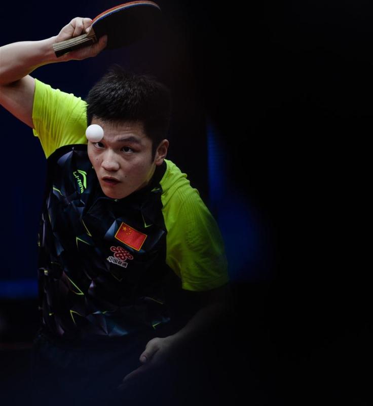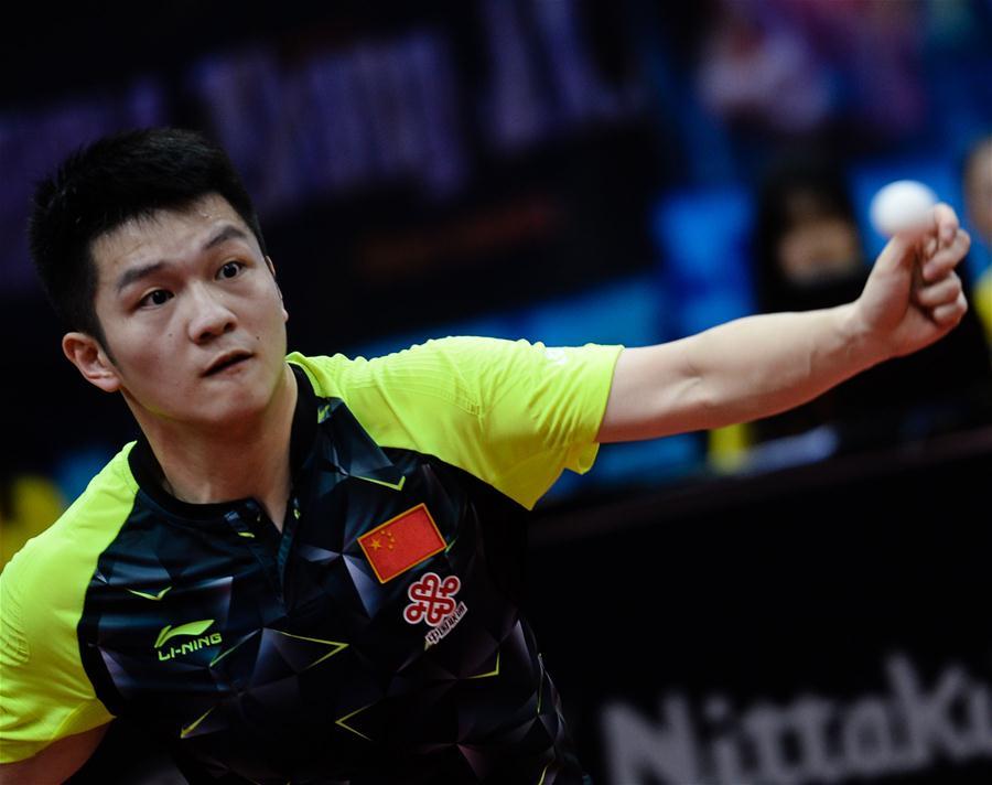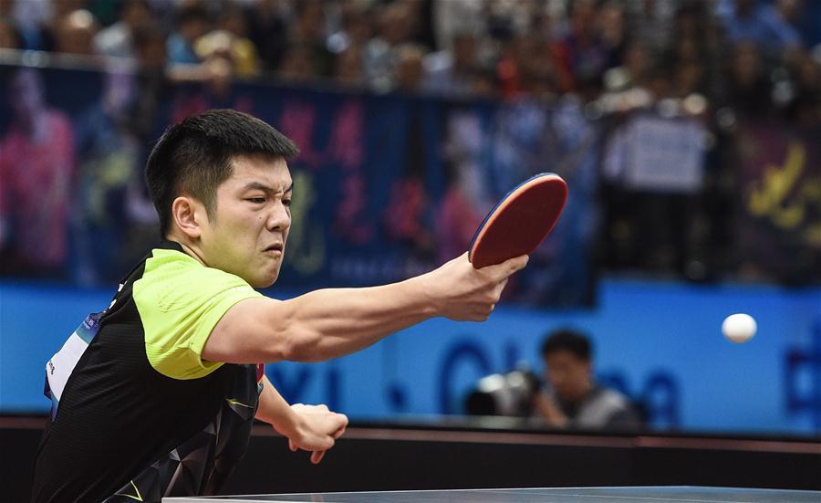 Winner China's Fan Zhendong celebrates with his trophy during the awarding ceremony for the men's singles event at the 23rd ITTF Asian Table Tennis championships in Wuxi, east China's Jiangsu Province, April 16, 2017. (Xinhua/Li Xiang)