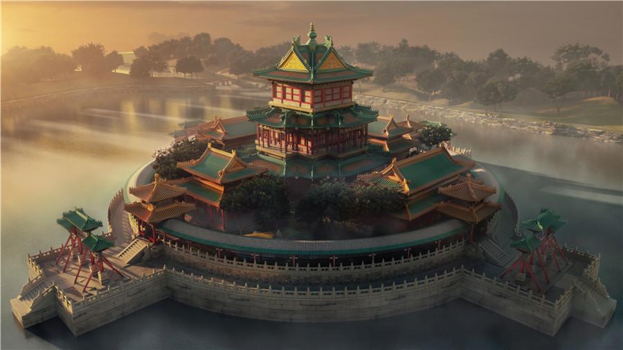 The restoration scenery of the Fanghu Wonderland at the Old Summer Palace during the period of the Qianlong emperor in the Qing Dynasty (1644-1911). (Photo/Asianewsphoto)