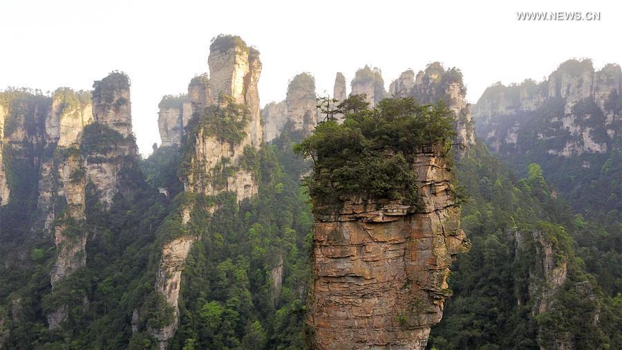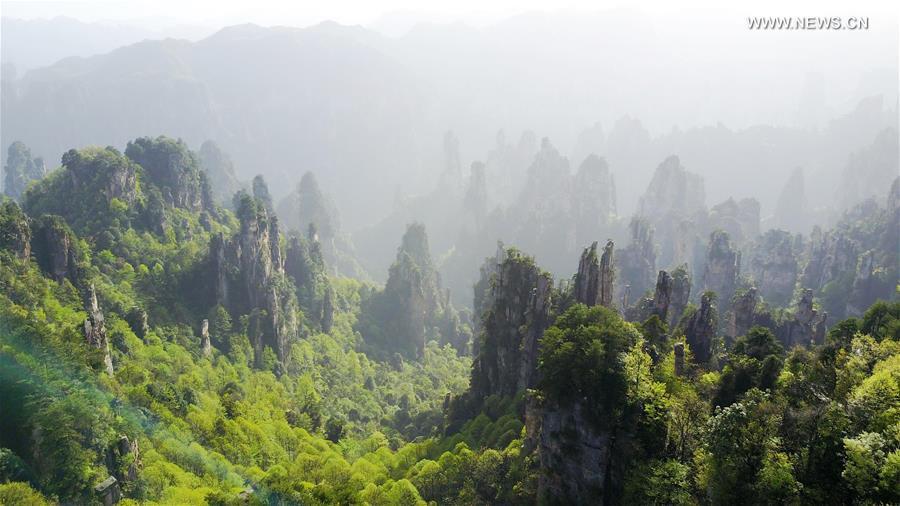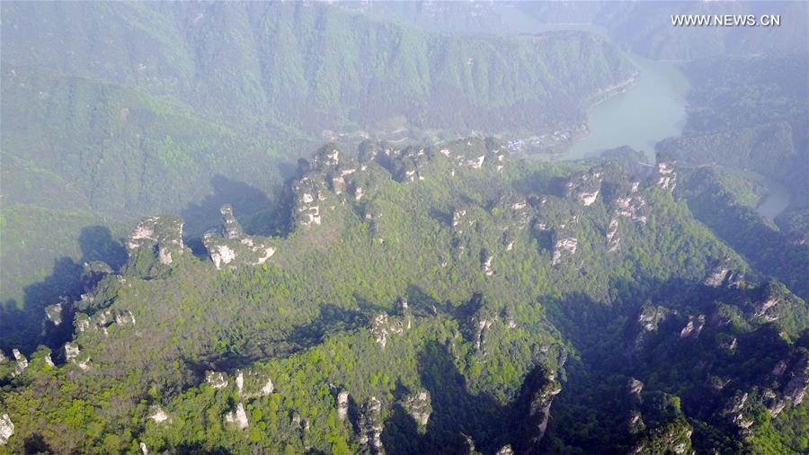 Tourists walk on a glass pavement in Tianmenshan scenic area in Zhangjiajie, central China's Hunan Province, April 19, 2017. Zhangjiajie is a famous tourist destination in Hunan Province. (Xinhua/Chen Yehua)