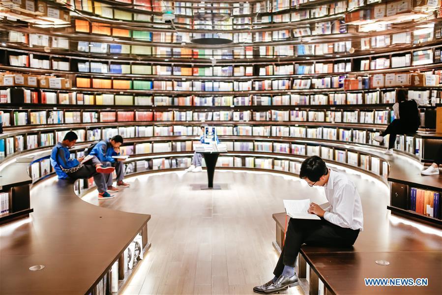 People read books at a bookstore in Hangzhou, capital of east China's Zhejiang Province, April 21, 2017. World Book and Copyright Day, a yearly event on April 23, is organized by the United Nations Educational, Scientific and Cultural Organization (UNESCO) to promote reading, publishing and copyright. (Xinhua/Zhang Cheng)
