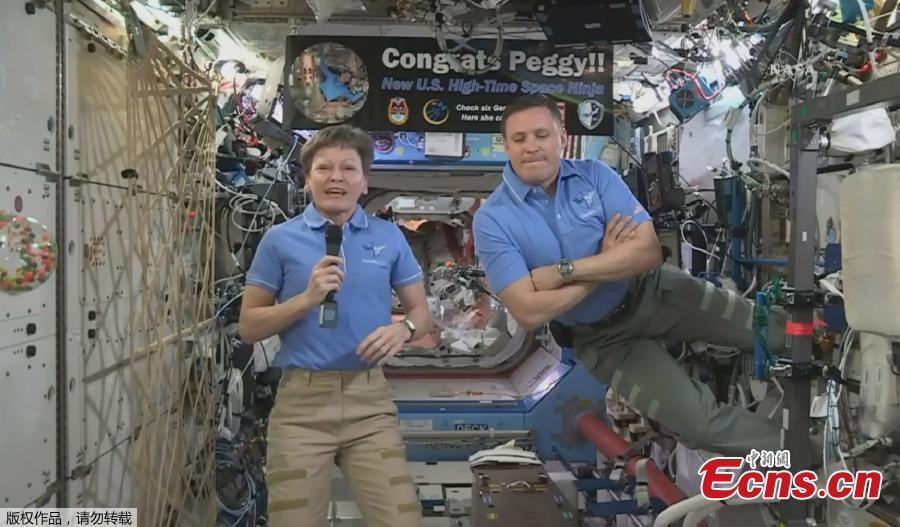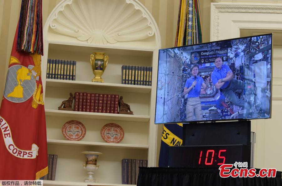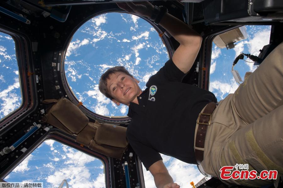 U.S. astronaut Peggy Whitson breaks the 534-day U.S. record for cumulative time in space, April 24, 2017. She marked the occasion by speaking with President Donald Trump about plans for human trips to Mars. (Photo/Agencies)