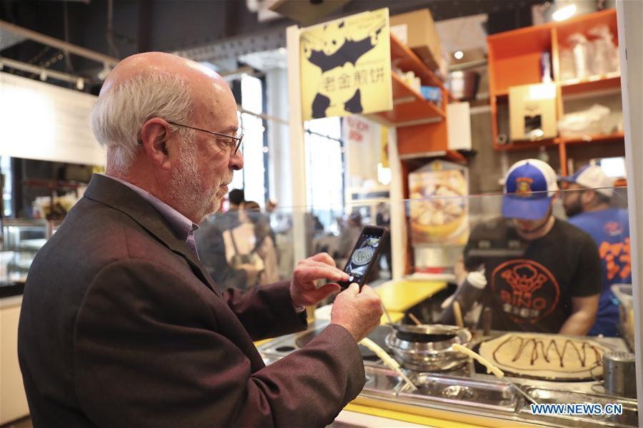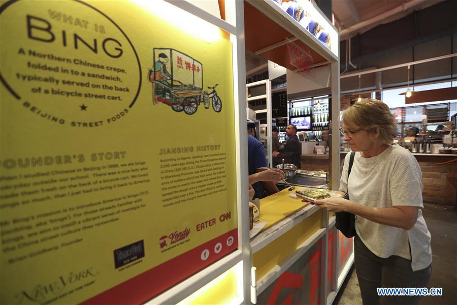 Selling Jianbing to New Yorkers is surely not the same with selling them to Chinese. To cater to the taste of Americans, Goldberg applied several changes to the recipe after trial and errors. The Jianbing as you see today at Mr. Bing's is a revised version: fried wonton skin is used to replace dough stick, and a signature Chinese spicy source instead of fermented bean curd, and there is meat, which Americans love. According to Goldberg, the best-selling flavors are Peking duck and the original. Apart from the UrbanSpace kiosk, Goldberg is also planning on opening another two, in Chelsea and Flatiron separately. Even with one storefront, Goldberg is selling hundreds of Jianbing each day. He is confident this Chinese snack can be something, "Anyway, Americans didn't know much about sushi or burritos back twenty years," Goldberg said, "And they are having them all the time." The great goal of Goldberg is bringing Jianbing to the world and establishing his own signature brand with Mr. Bing.(Xinhua/Wang Ying)