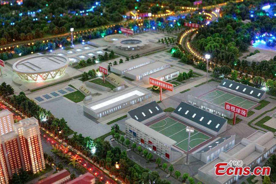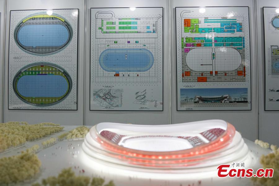 An architectural model of China’s planned national speed skating arena is on display in Beijing, April 25, 2017. The stadium is to be used for the Winter Olympics in 2022 and the outside of the stadium appears to be surrounded by 22 ice ribbons. (Photo: China News Service/Han Haidan)
