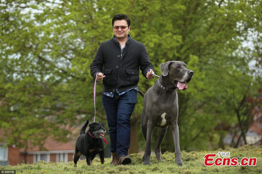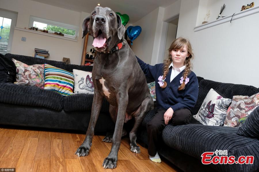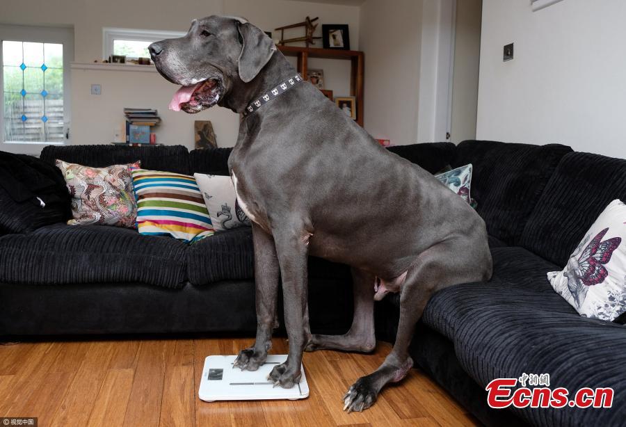 2.1-m long Great Dane challenges to be UK's biggest dog(1/3)