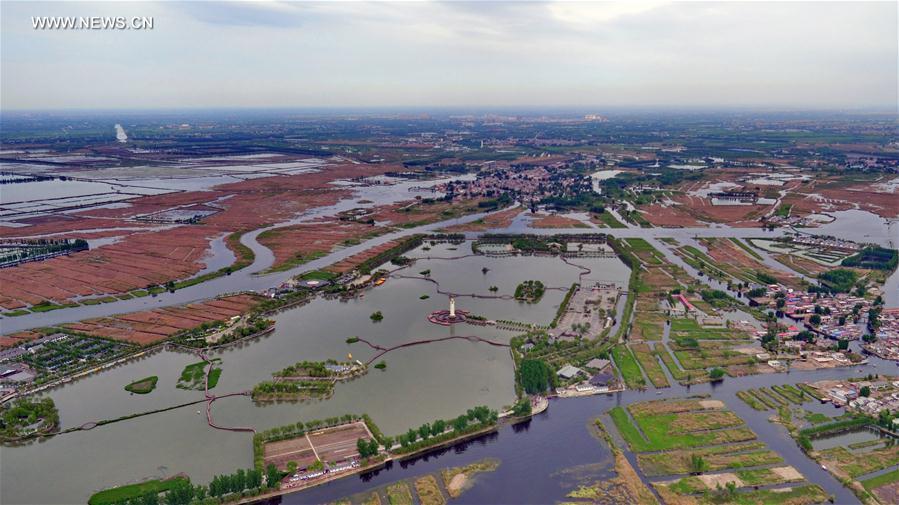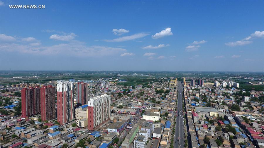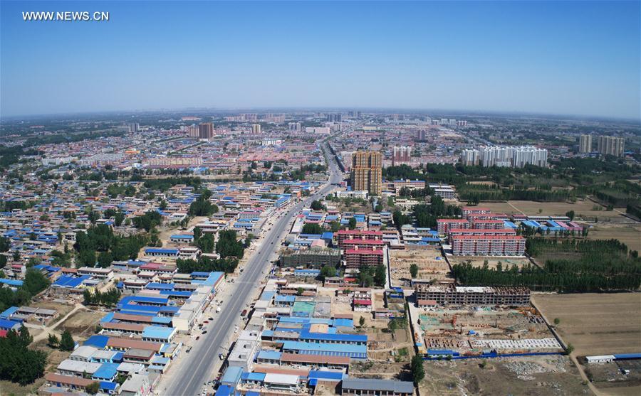 Photo taken on April 26, 2017 shows the scenery of the county seat of Xiongxian, north China's Hebei Province. China announced the plan for Xiongan New Area, an economic zone about 100 kilometers south of Beijing, on April 1, 2017. The new area will span Xiongxian, Rongcheng and Anxin counties in Hebei Province, eventually covering 2,000 square kilometers. Hebei announced recently it would call for international bids to plan and design Xiongan New Area. Global companies are welcomed to bid with their ideas for a 30-square-km area at initial stage. (Xinhua/Yang Shiyao)