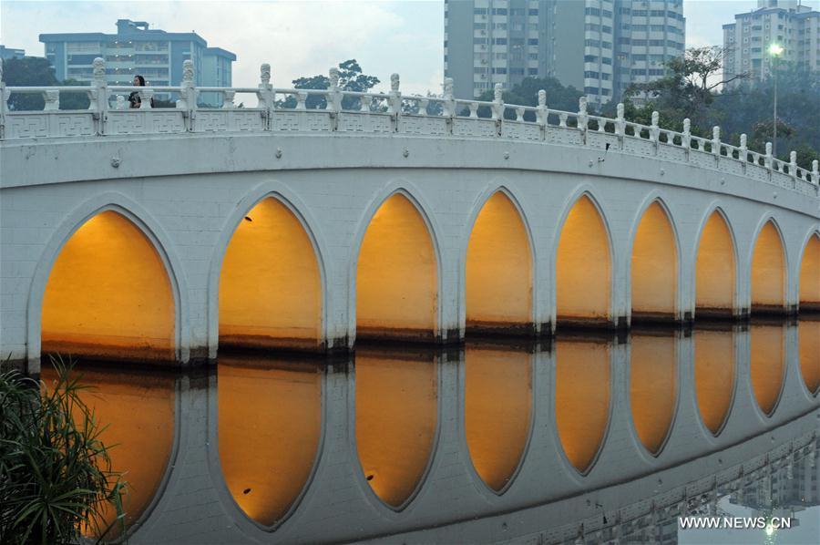 One of the bridges is seen at the Chinese Garden in Singapore, April 26, 2017. (Xinhua/Then Chih Wey)