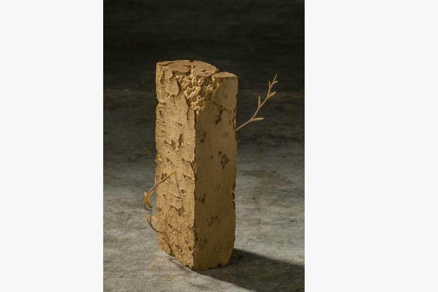 Veteran sculptor Wu Ching, 61, from Taiwan, has introduced his sparkling gold and wood works to Beijing.