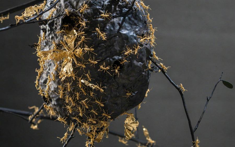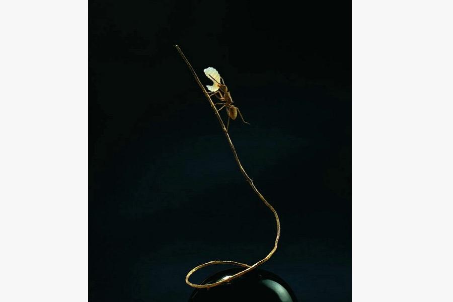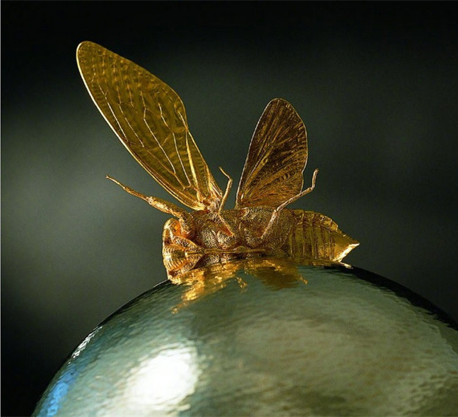 Finely carved insects, little animals and plants, shining with the beauty of gold, are Wu's artistic interpretations of the circle of life. Setting his mind on gold and wood carving at the age of 22, Wu has tried to create artworks out of pure love for his craft.