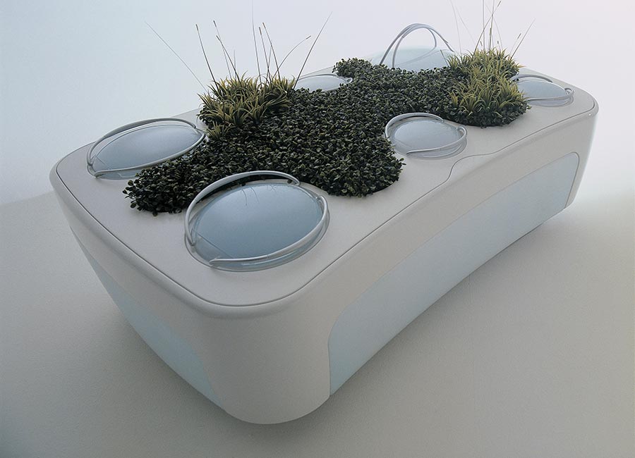 On show are chairs, lamps, motorcycle and drones that aim to reflect their designers' attention to saving energy through technology and the preservation of handmade traditions.