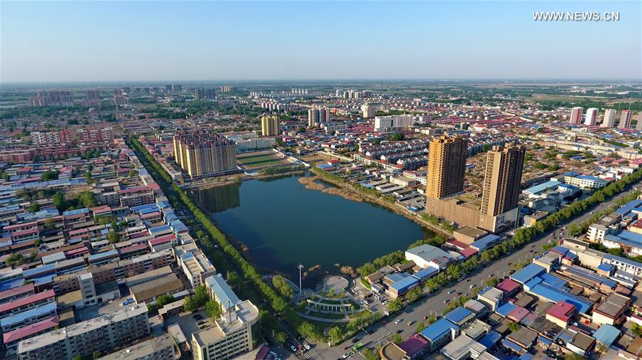 Photo taken on April 24, 2017 shows the scenery of the county seat of Rongcheng, north China's Hebei Province. China announced the plan for Xiongan New Area, an economic zone about 100 kilometers south of Beijing, on April 1, 2017. The new area will span Xiongxian, Rongcheng and Anxin counties in Hebei Province, eventually covering 2,000 square kilometers. Hebei announced recently it would call for international bids to plan and design Xiongan New Area. Global companies are welcomed to bid with their ideas for a 30-square-km area at initial stage. (Xinhua/Mou Yu)