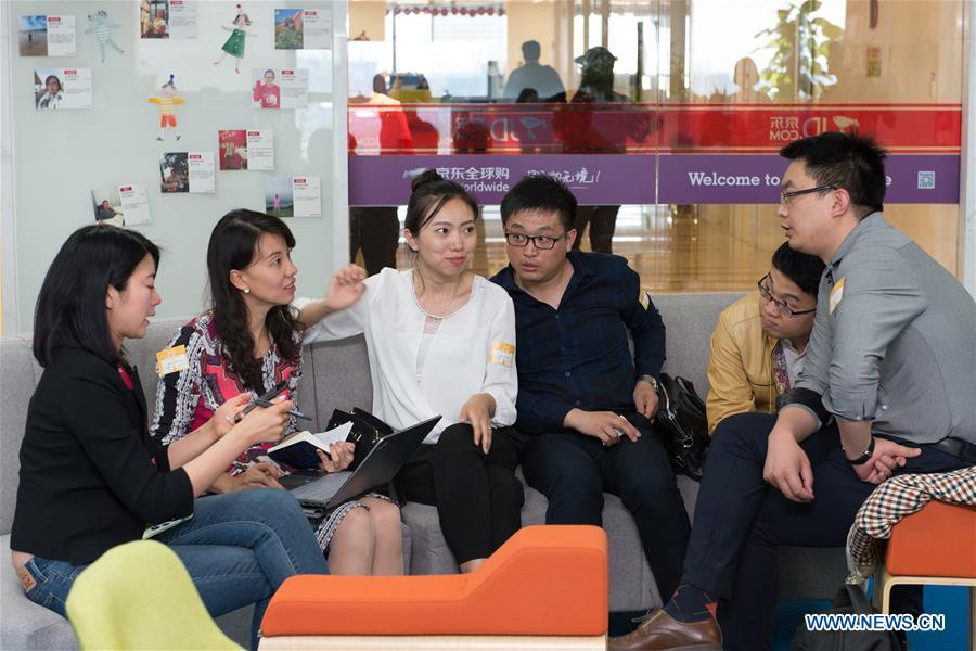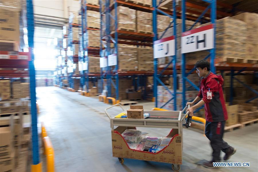 Staff members pack the express packages at JD's warehouse in the pilot free trade zone in north China's Tianjin Municipality, April 28, 2017. By 2016, JD.com opened 256 major warehouses across the country, covering most of the domestic key cities along the Belt and Road Initiative, including Shanghai, Xi'an and Chengdu. The further opening up to overseas markets has brought the number of product brands available at JD Worldwide Service to over 20,000, covering more than 70 countries and regions. Besides traditionally popular exporters such as Europe and the United States, Chinese e-commerce has seen growing interest in products from Belt and Road countries, such as latex pillows and rice from Thailand, and electronics from Israel. (Xinhua/Wu Kaixiang)