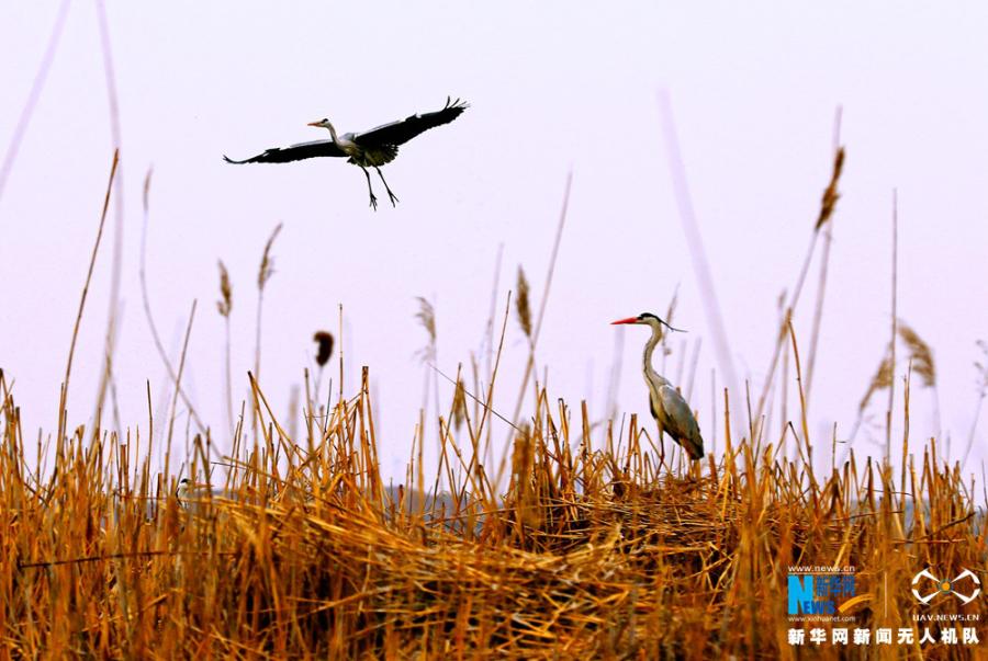 A bird-watching spot within the Sand Lake. (Xinhua/Zhang Jielong)