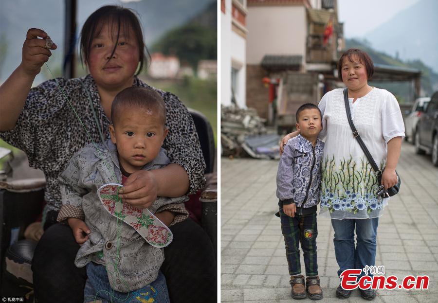 Nine years ago, the Wenchuan earthquake that left nearly 90,000 dead or missing killed many children in Yingxiu town. Some women who suffered the tragedy went on to become new mothers later. Here we take a look at some of them and their children.
