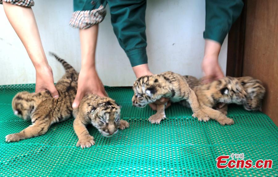 Quintuplet tiger cubs play at the Siberian Tigers Park, the world’s largest breeding center for the cat, in Harbin City, the capital of Northeast China’s Heilongjiang Province, May 11, 2017. More than 50 tigers, including a quintuplet, have been born at the park this year. (Photo: China News Service/Wang Shu)
