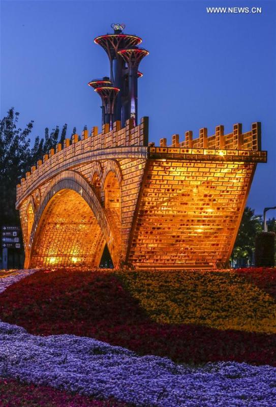 Photo taken on May 10, 2017 shows the night view of the Tian'anmen Rostrum in downtown Beijing, capital of China, May 10, 2017. Landscape lighting will illuminate Beijing in the evening from May 12 to 17 as in major festivals to greet the Belt and Road Forum for International Cooperation on May 14-15. (Xinhua/Shen Bohan)