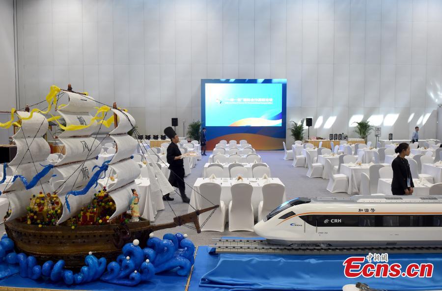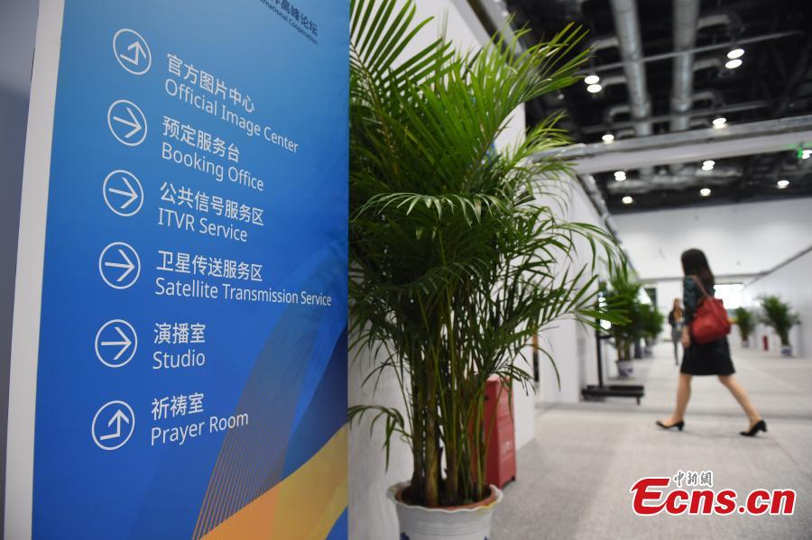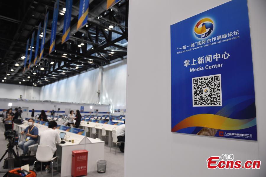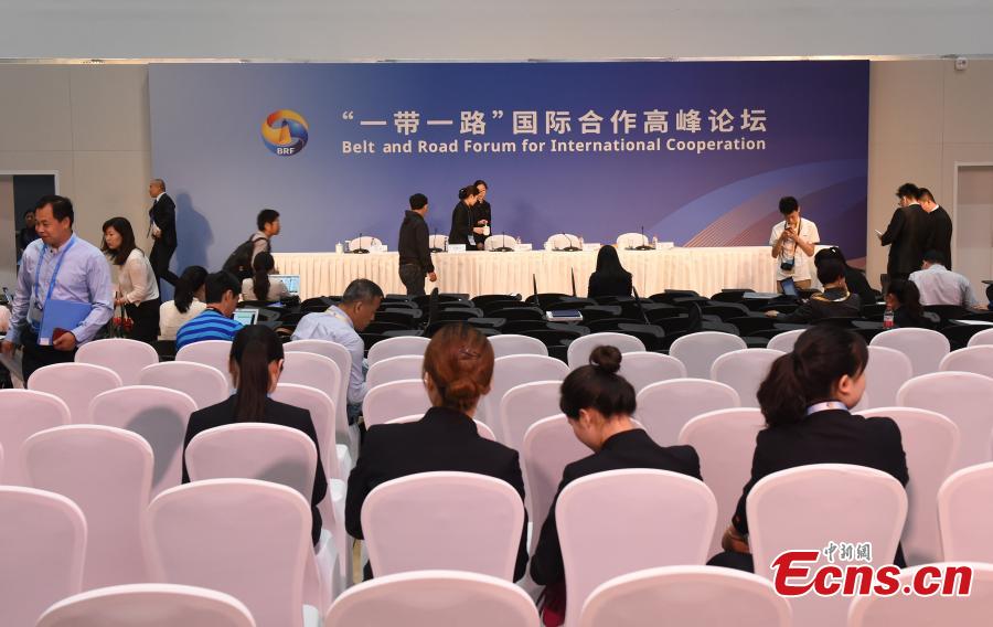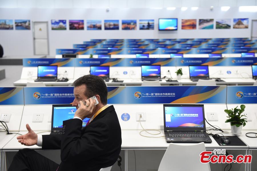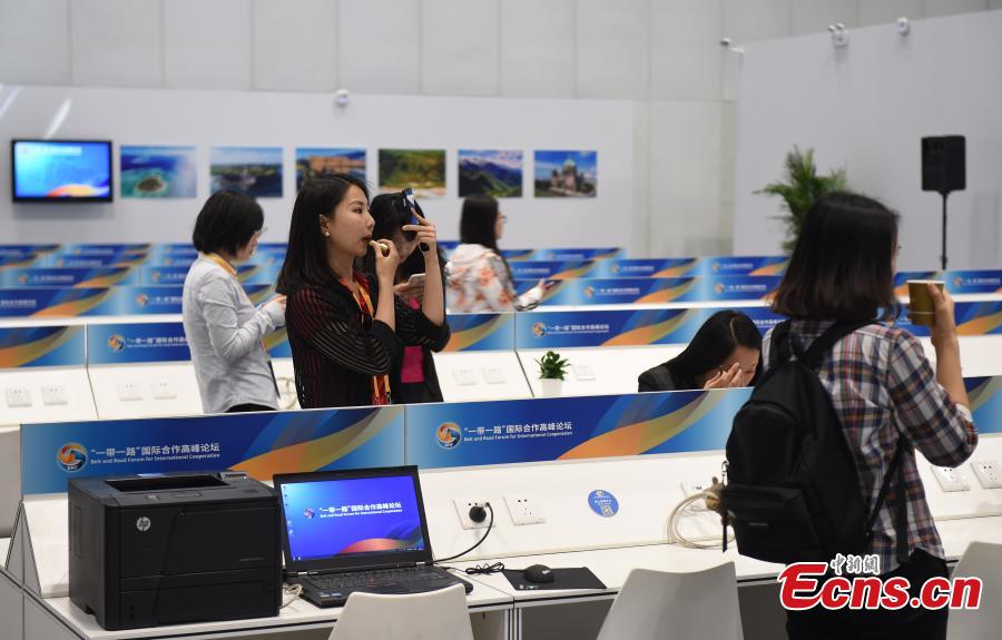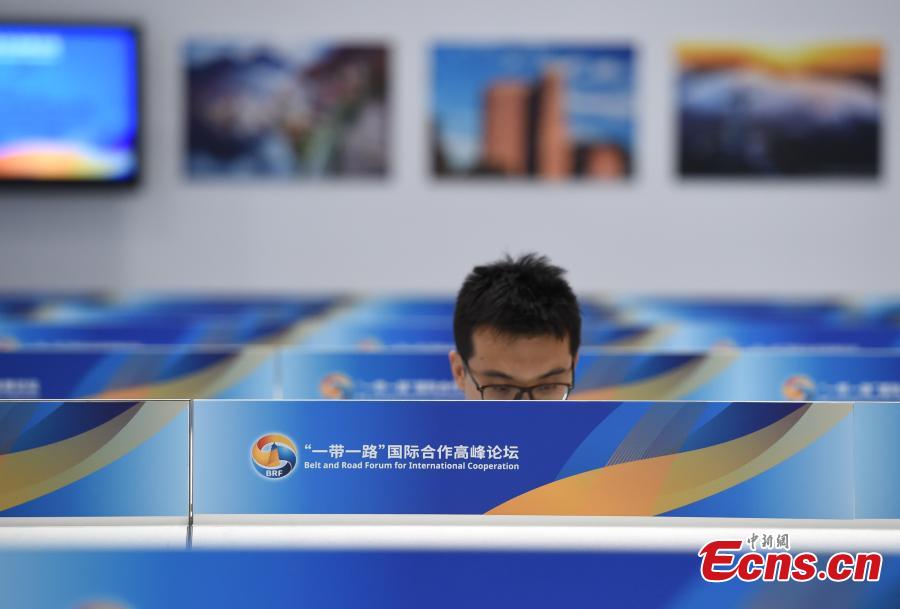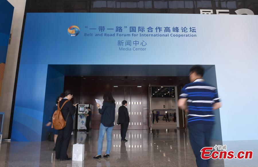 The press center for the Belt and Road Forum for International Cooperation is put into use in Beijing, May 12, 2017. The forum will be held from May 14 to 15 in Beijing. President Xi Jinping will attend the opening ceremony and host a roundtable leaders' summit. The Belt and Road Initiative proposed by China in 2013 consists of the Silk Road Economic Belt and the 21st-Century Maritime Silk Road. It aims to build a trade and infrastructure network connecting Asia with Europe and Africa along, and beyond, the ancient Silk Road trade routes. (Photo: China News Service/Hou Yu)